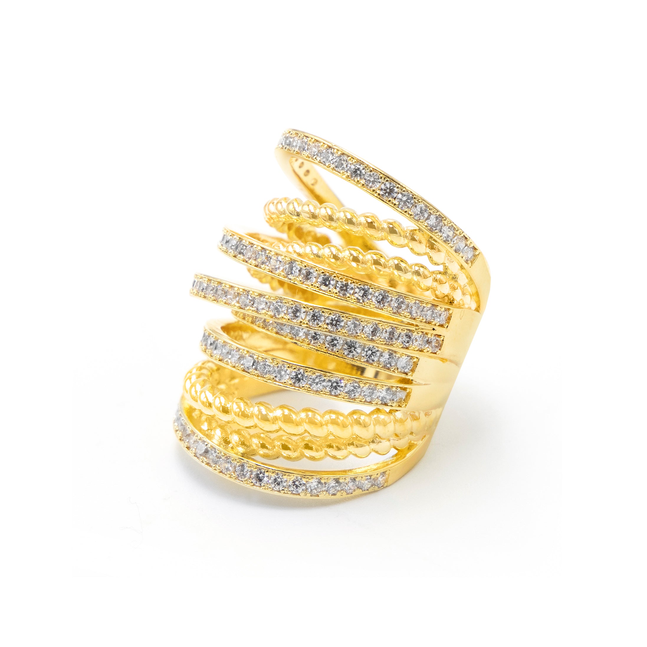 ¡Prepárate para llevar la sofisticación a otro nivel con este extraordinario anillo de Lavanda! Su diseño largo y entrelazado crea la ilusión de varios anillos fusionados en uno, creando un efecto visual impresionante. El elegante color plata se combina a la perfección con las deslumbrantes zirconias que lo rodean, añadiendo un toque de brillo y glamour a tus manos. Confeccionado con chapa de rodio, este anillo garantiza durabilidad y resistencia. Ya sea para una ocasión especial o para destacar en tu día a día, este anillo de Lavanda te hará lucir radiante y segura de ti misma. ¡Prepárate para brillar con estilo y originalidad!
