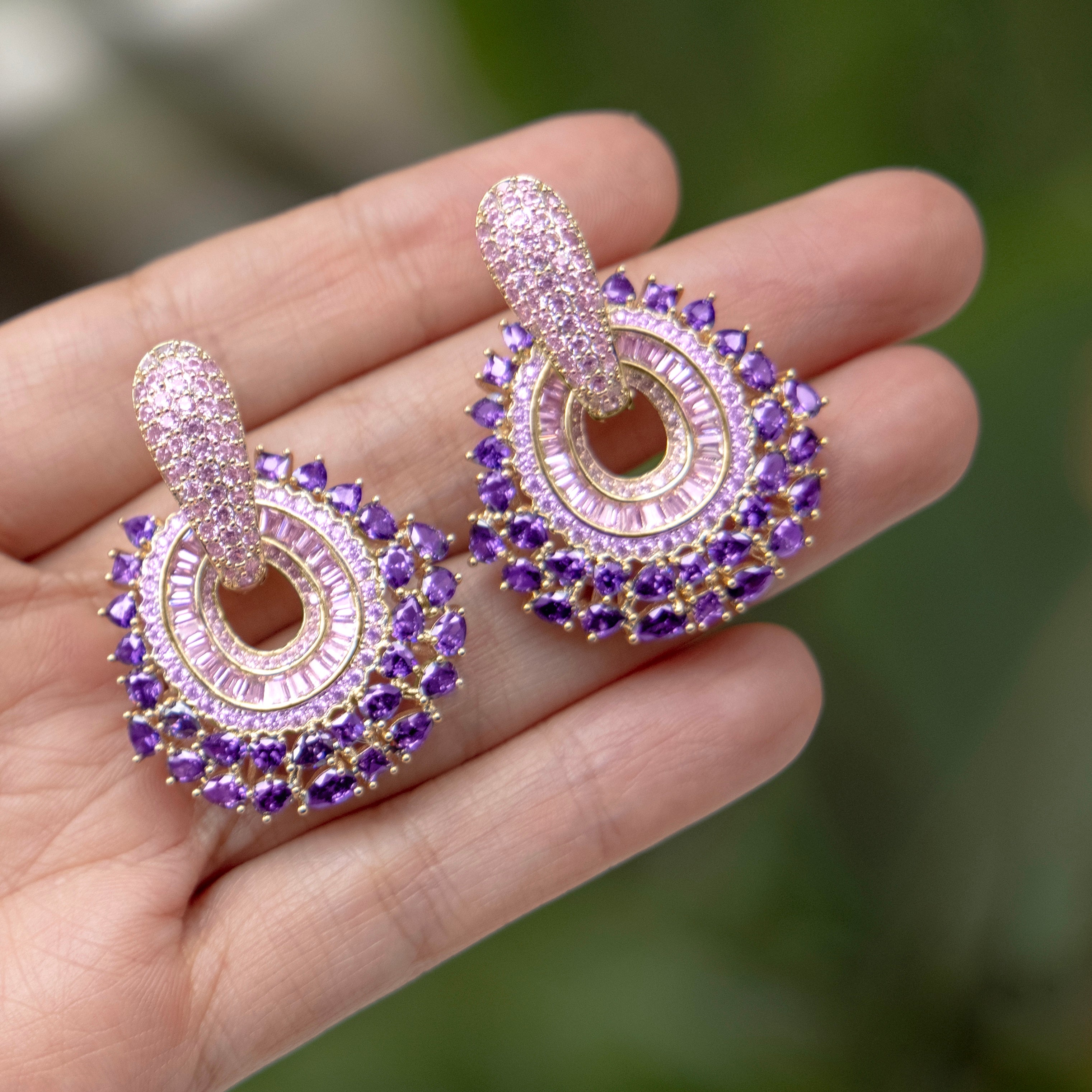 Realza tu estilo con los deslumbrantes aretes de moda 2 en 1 de Lavanda. Con hermosas zirconias amarillas en chapa de rodio, puedes lucirlos como elegantes aros largos o combinarlos con el círculo redondo con zirconias en tonos amarillos para una apariencia más llamativa. ¡Fascinantes por su versatilidad, son dos opciones en uno!