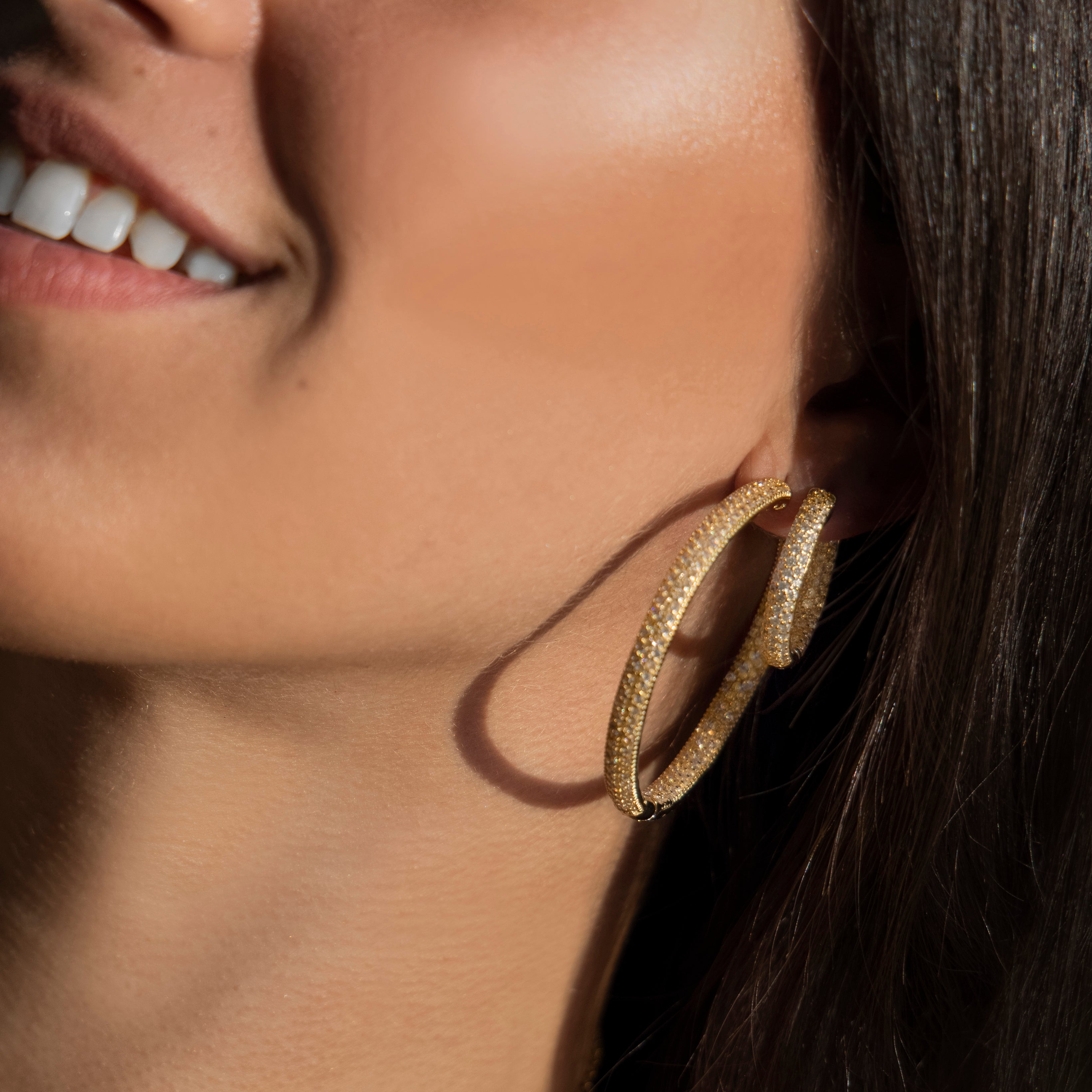 Arracadas clásicas grandes pavé dorado - chapa de oro 14k