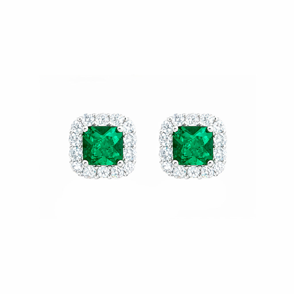 Broqueles cuadrados con esmeralda cultivada y aureola verde - plata 925