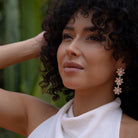 Aretes largos de 3 flores dorado - chapa de oro 14k