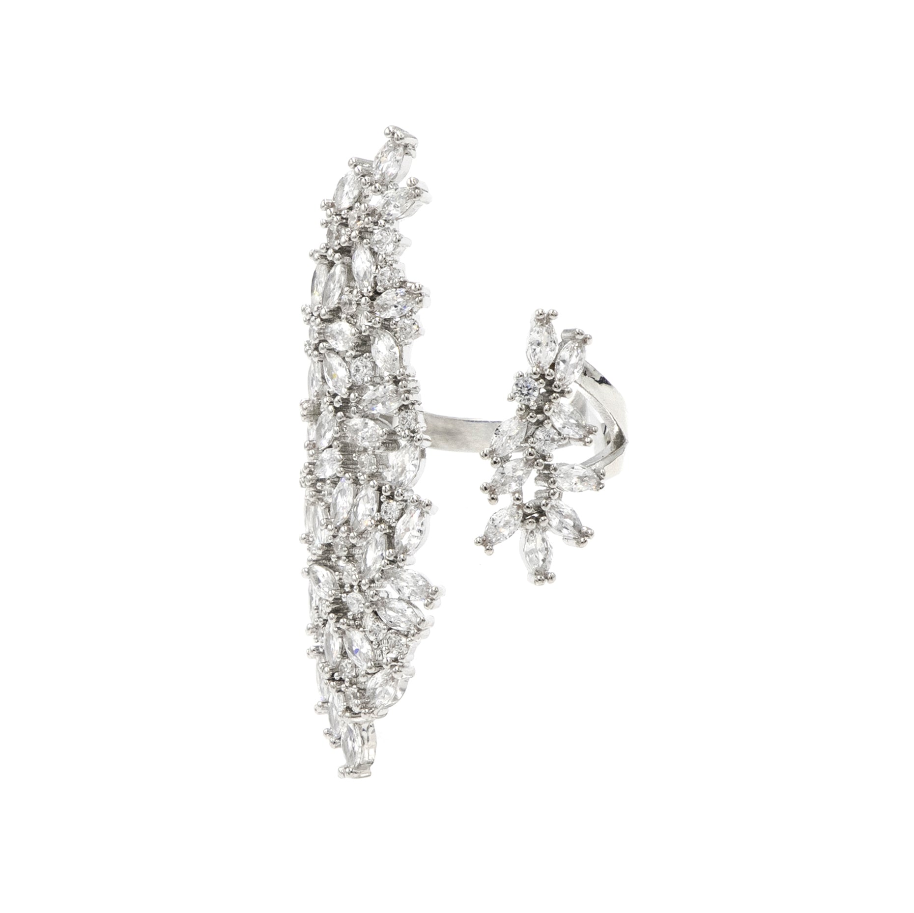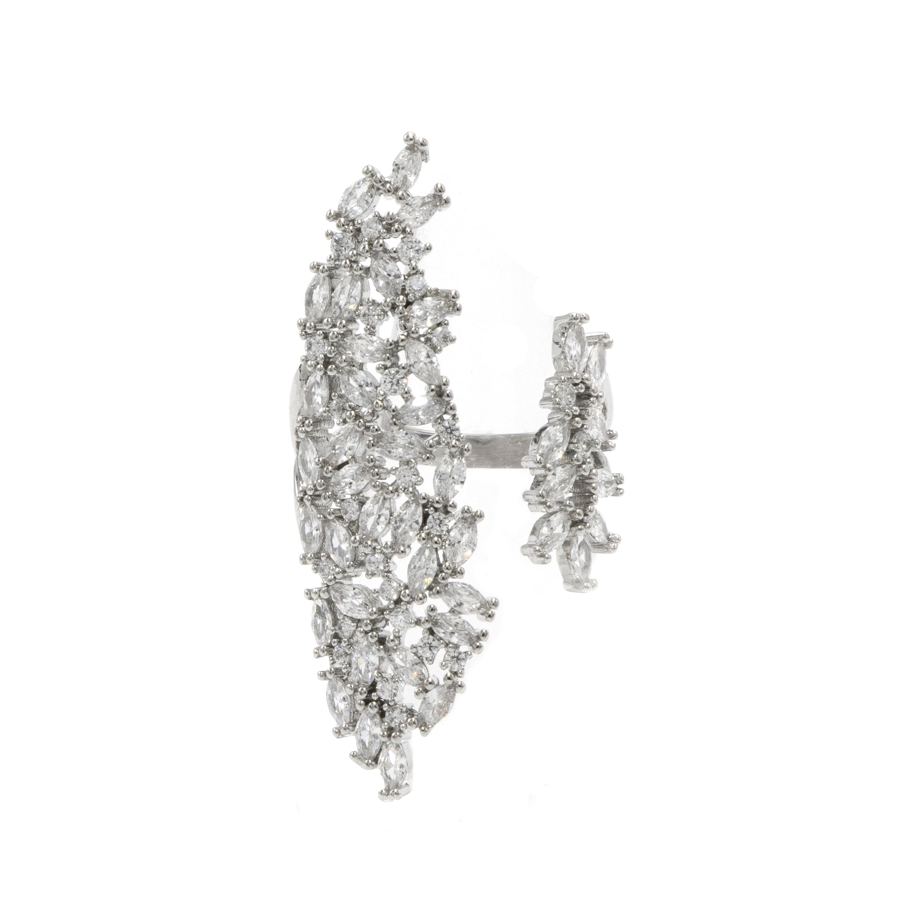 Anillo abierto de zirconias blanco - ajustable -chapa de rodio