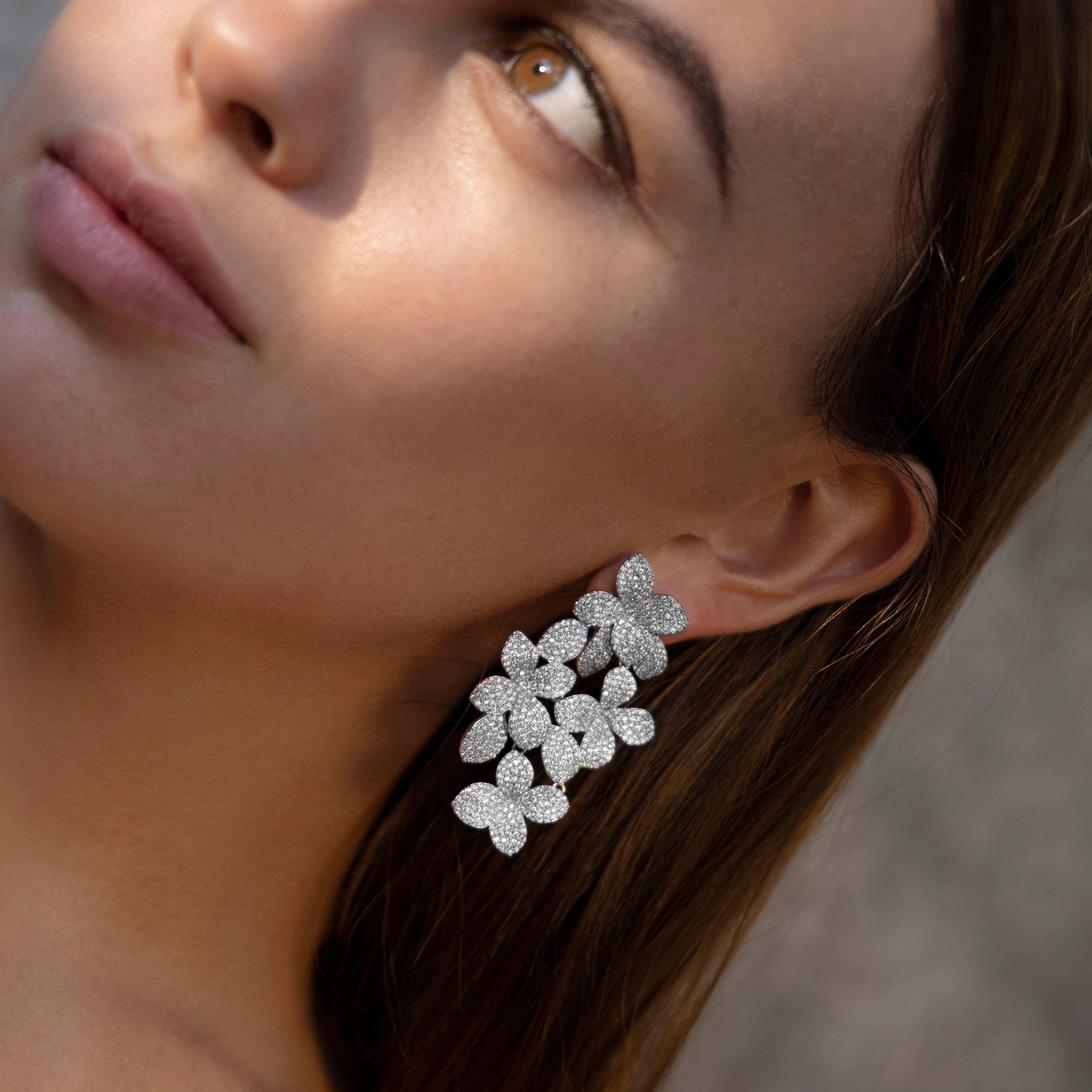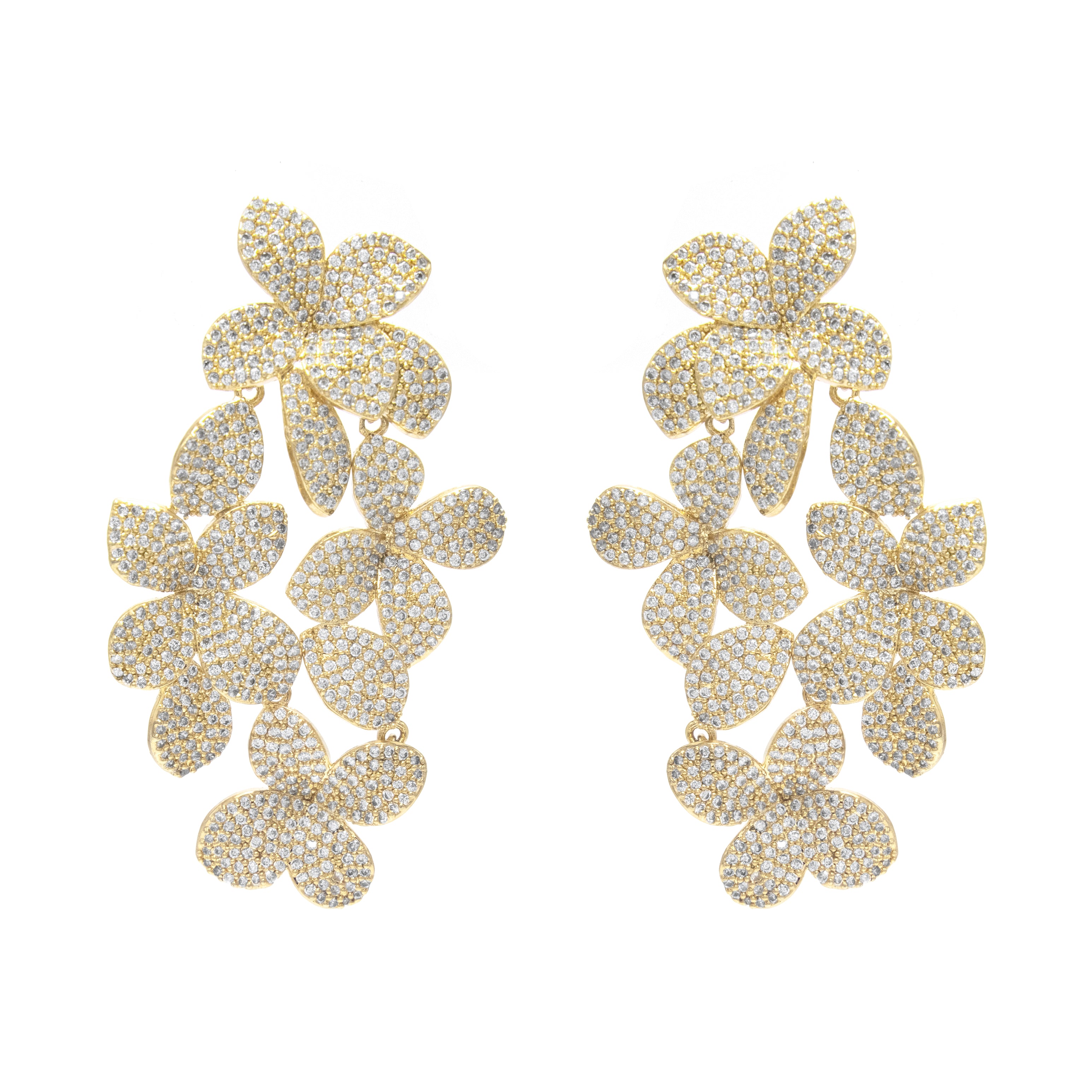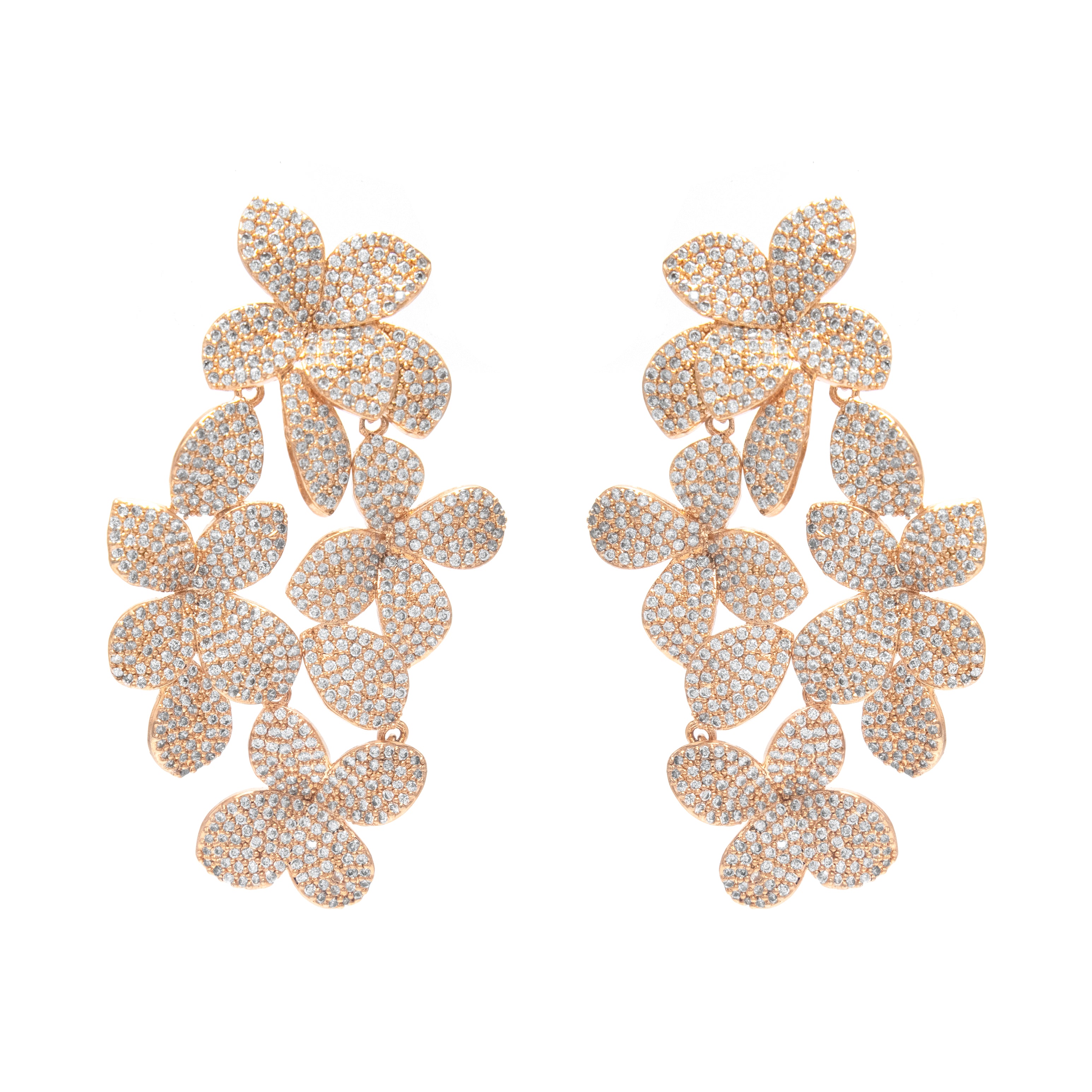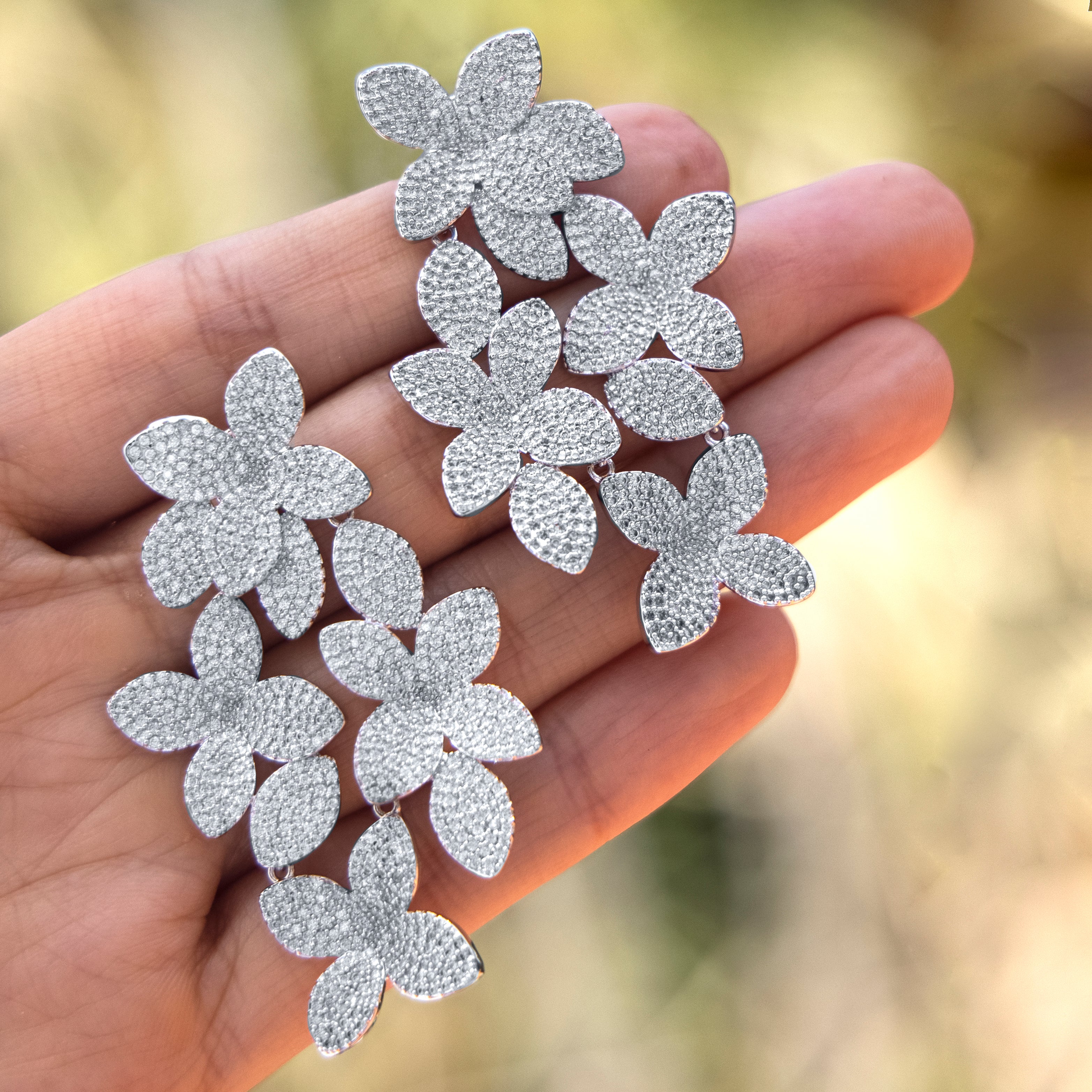 Aretes cascada lluvia de flores plata - chapa de rodio