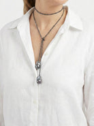 Luce sofisticada y moderna con nuestro Collar Corbatín de perlas gris oscuro. Elaborado con perlas naturales auténticas, este accesorio versátil combina elegancia clásica con un toque contemporáneo. Perfecto para elevar tu look diario o crear un estilo más formal, las perlas naturales añaden brillo y profundidad a cualquier outfit. Un detalle que susurra lujo sin gritar, porque la verdadera elegancia habla por sí sola.