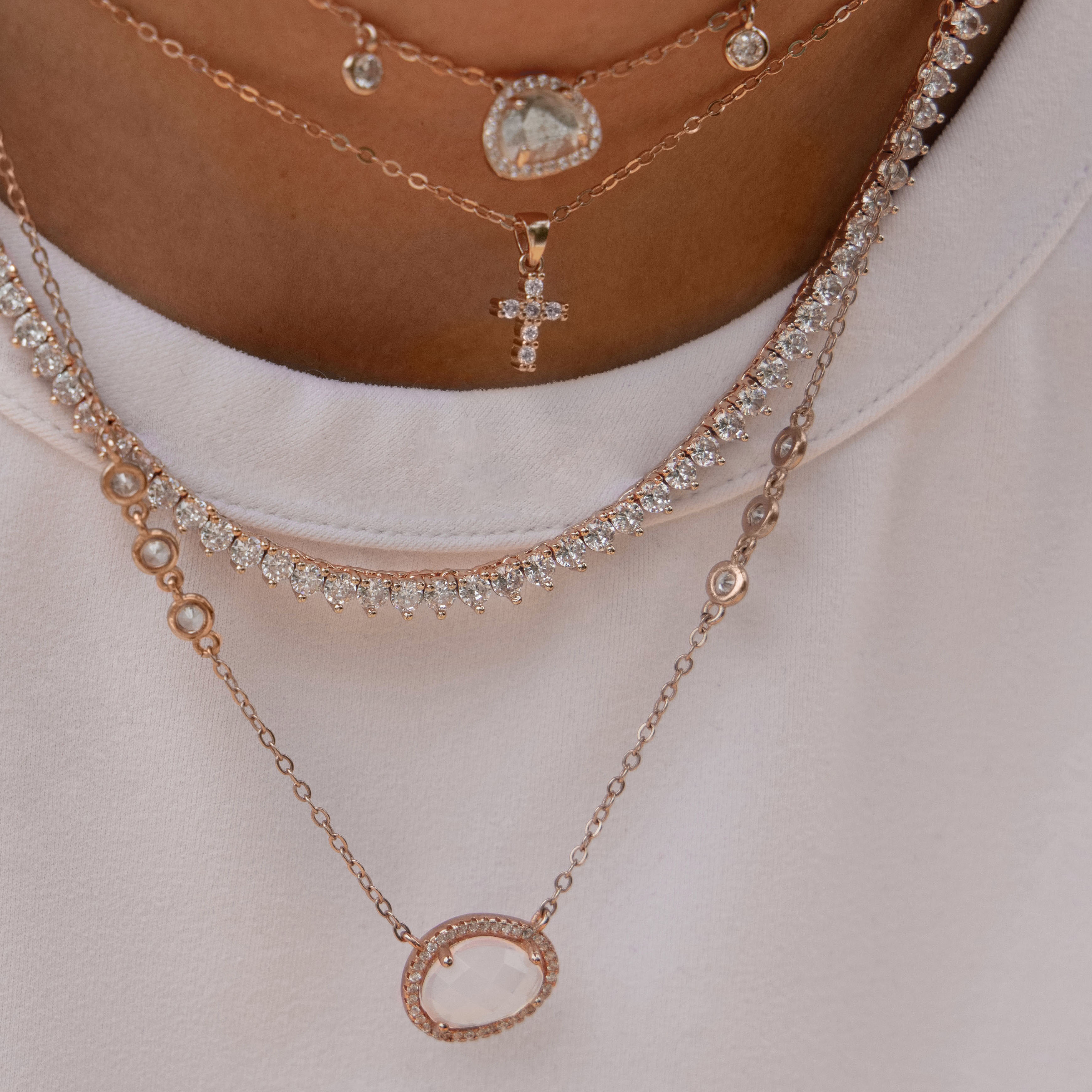 *Collar de zirconias biseladas y piedra blanco oro rosa- chapa de oro