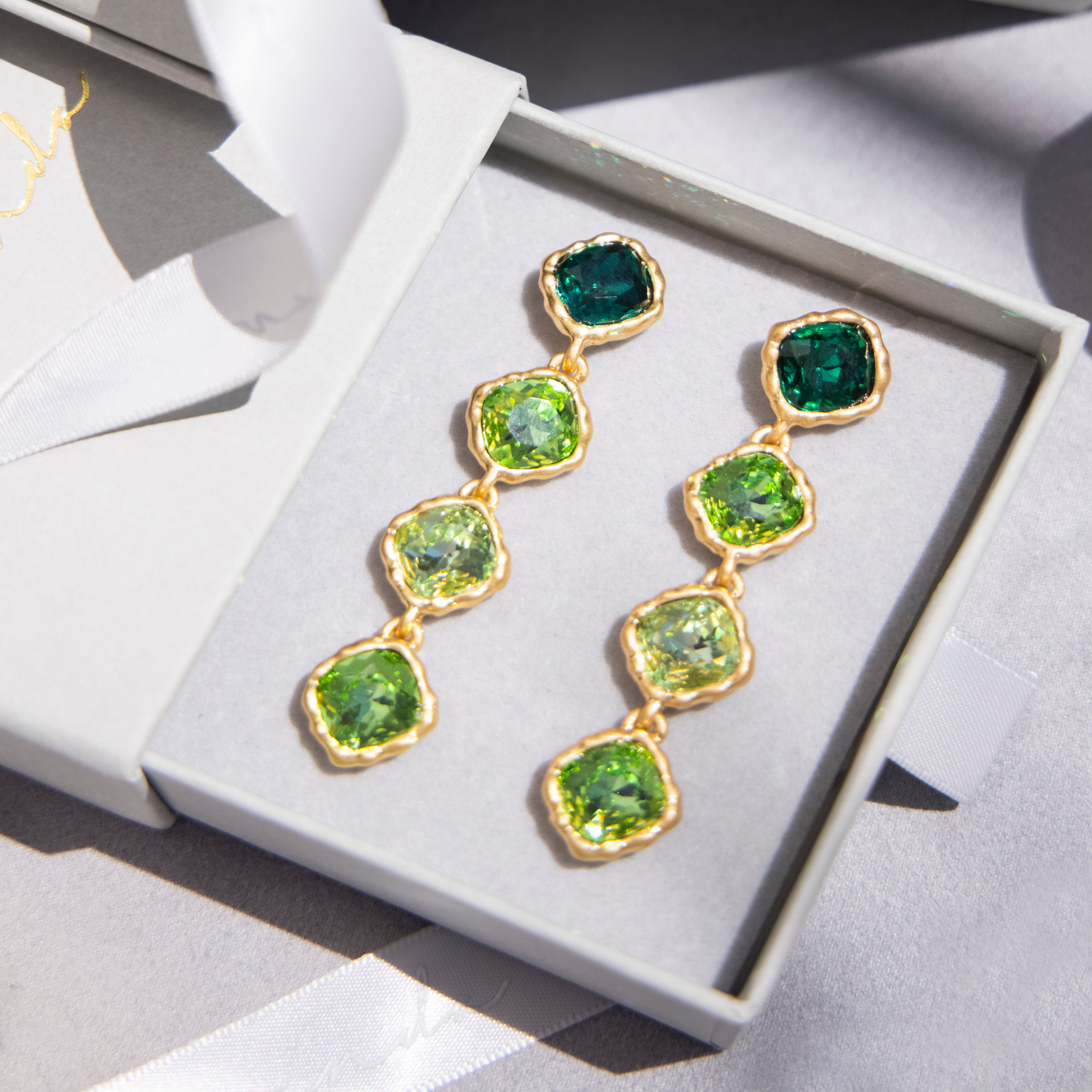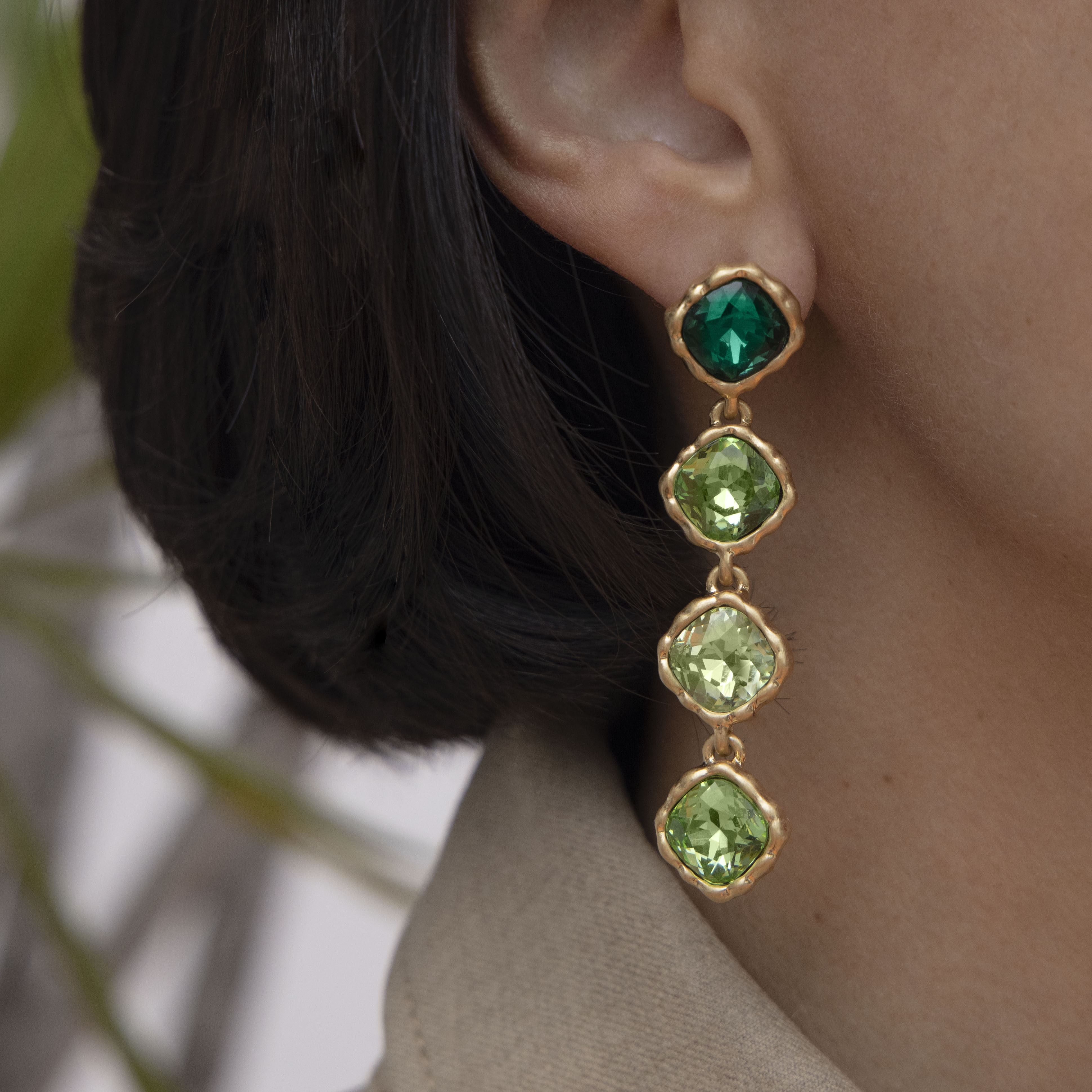 Aretes colgantes piedras degradadas verde - chapa de oro 14k