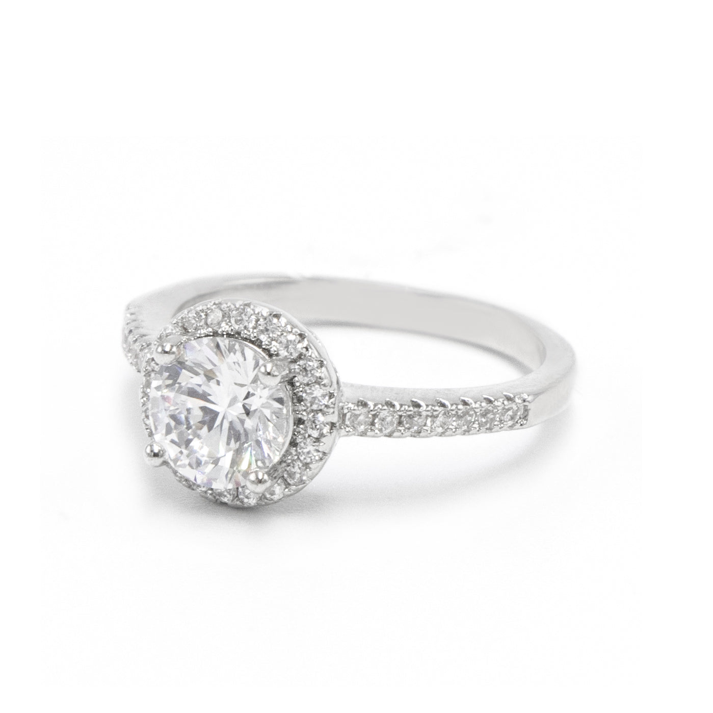 Anillo compromiso moissanita redonda y aureola blanco - plata 925