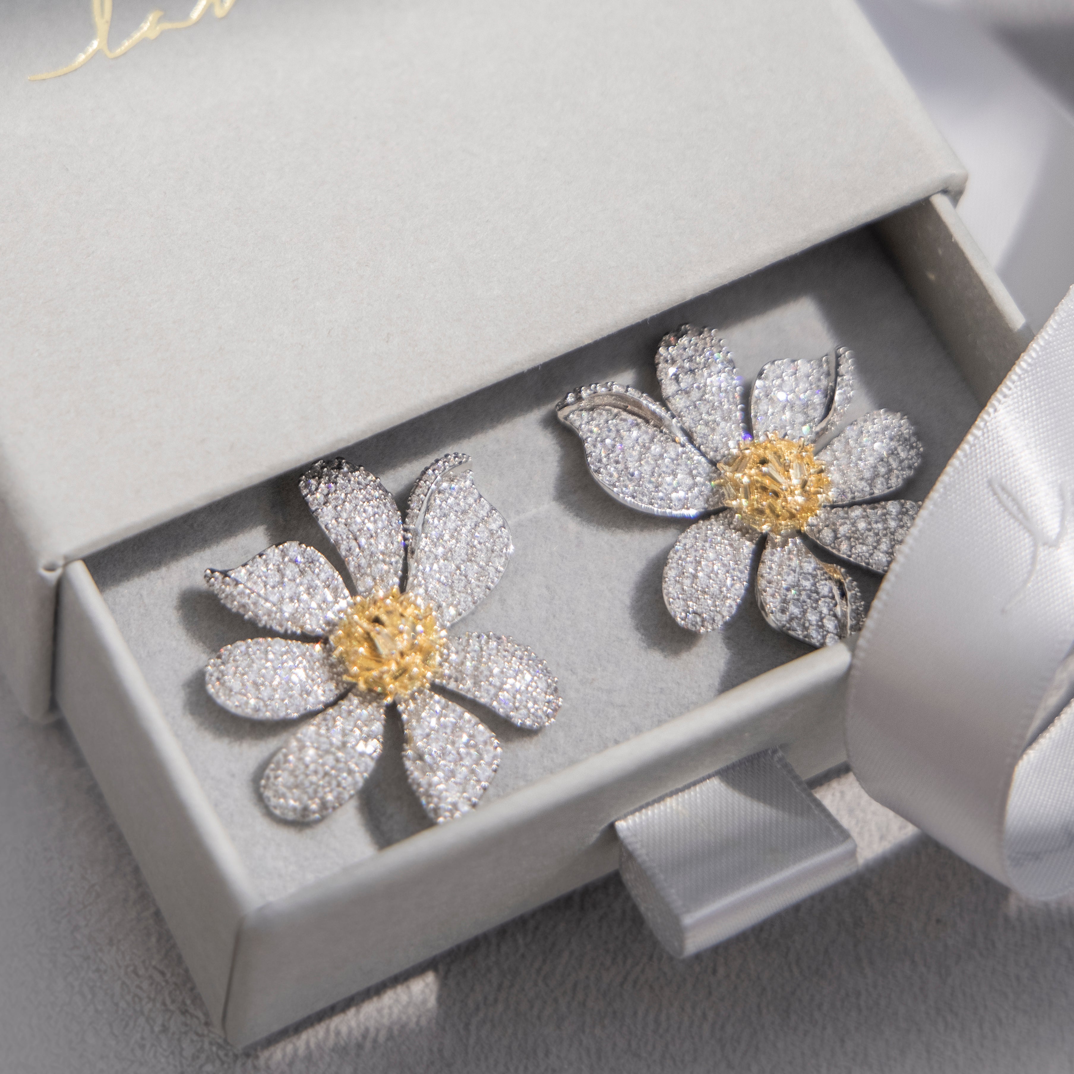Aretes Aster Amarillo - chapa de rodio