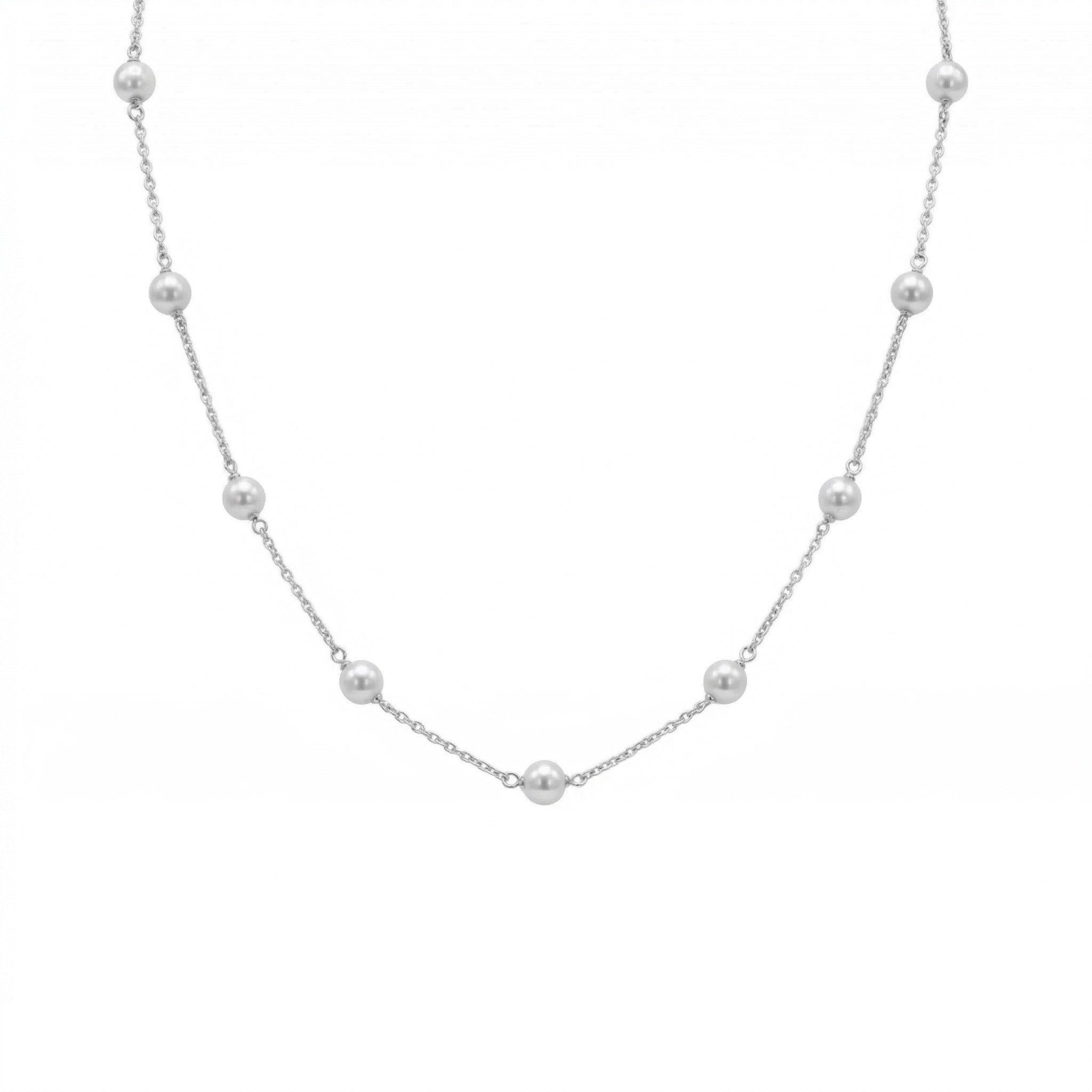 Elegante y delicado, este collar está elaborado en plata 925 y decorado con pequeñas perlas distribuidas a lo largo de la cadena, creando un diseño sutil y sofisticado. Es una pieza atemporal que aporta un toque de luz y feminidad a cualquier look.