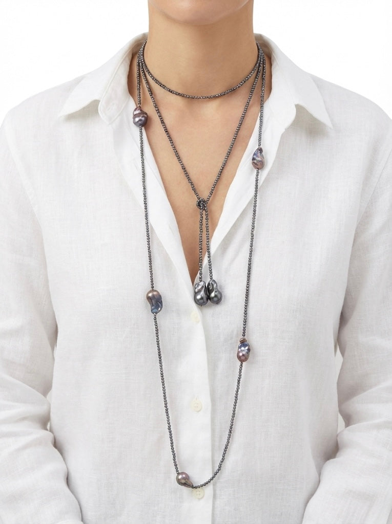 Collar de perlas gris oscuro largo mix - perlas naturales