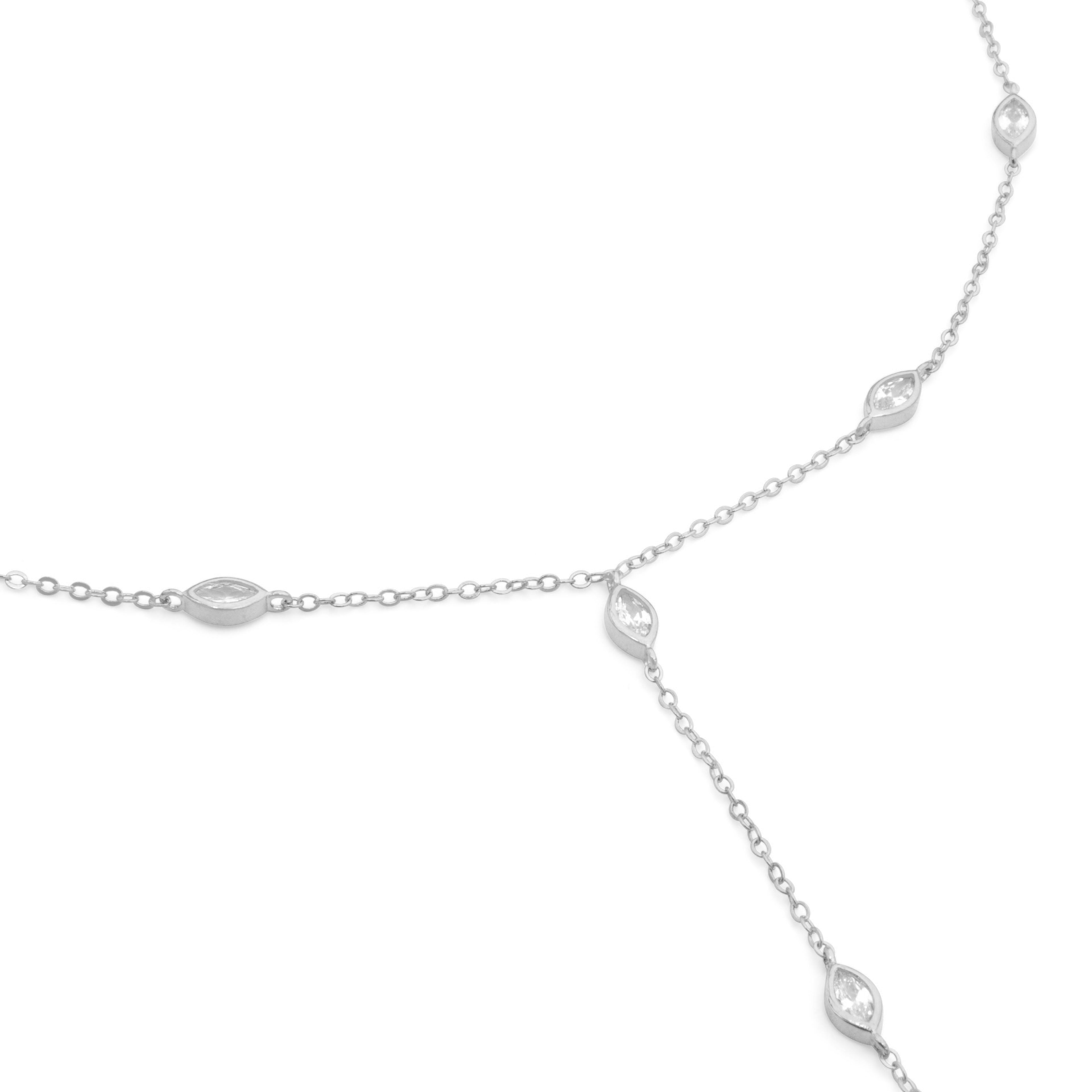 Collar lariat tipo "Y" con zirconias marquise plata - chapa de rodio