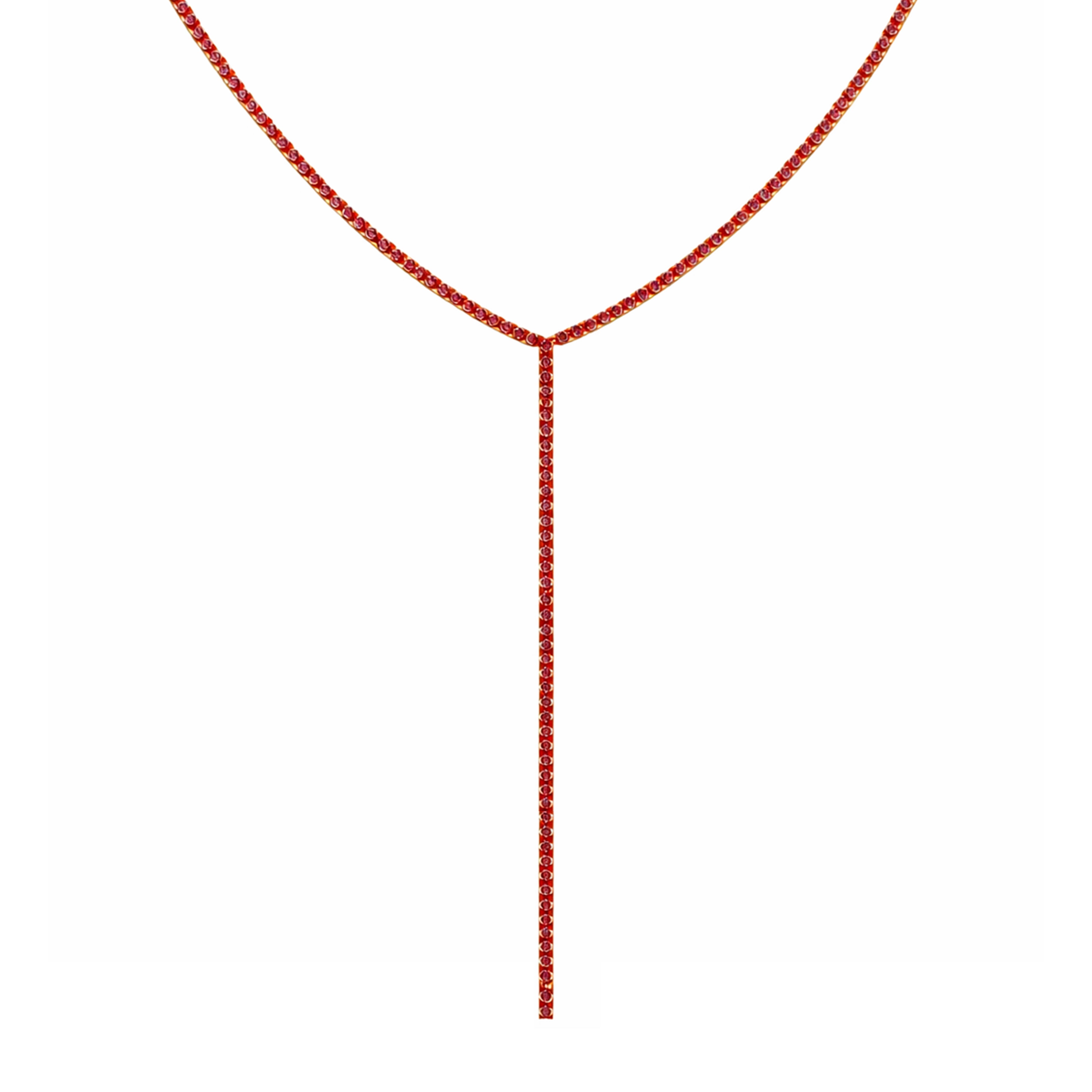 Collar lariat tipo "Y" tennis rojo - chapa de oro 14k