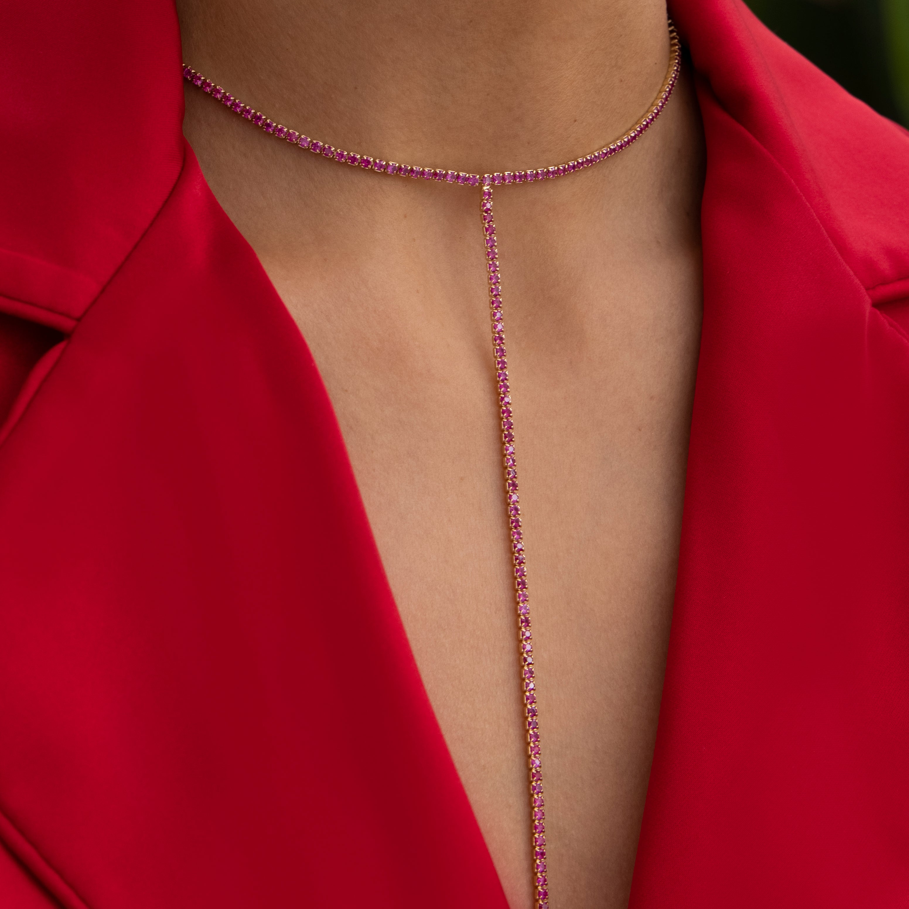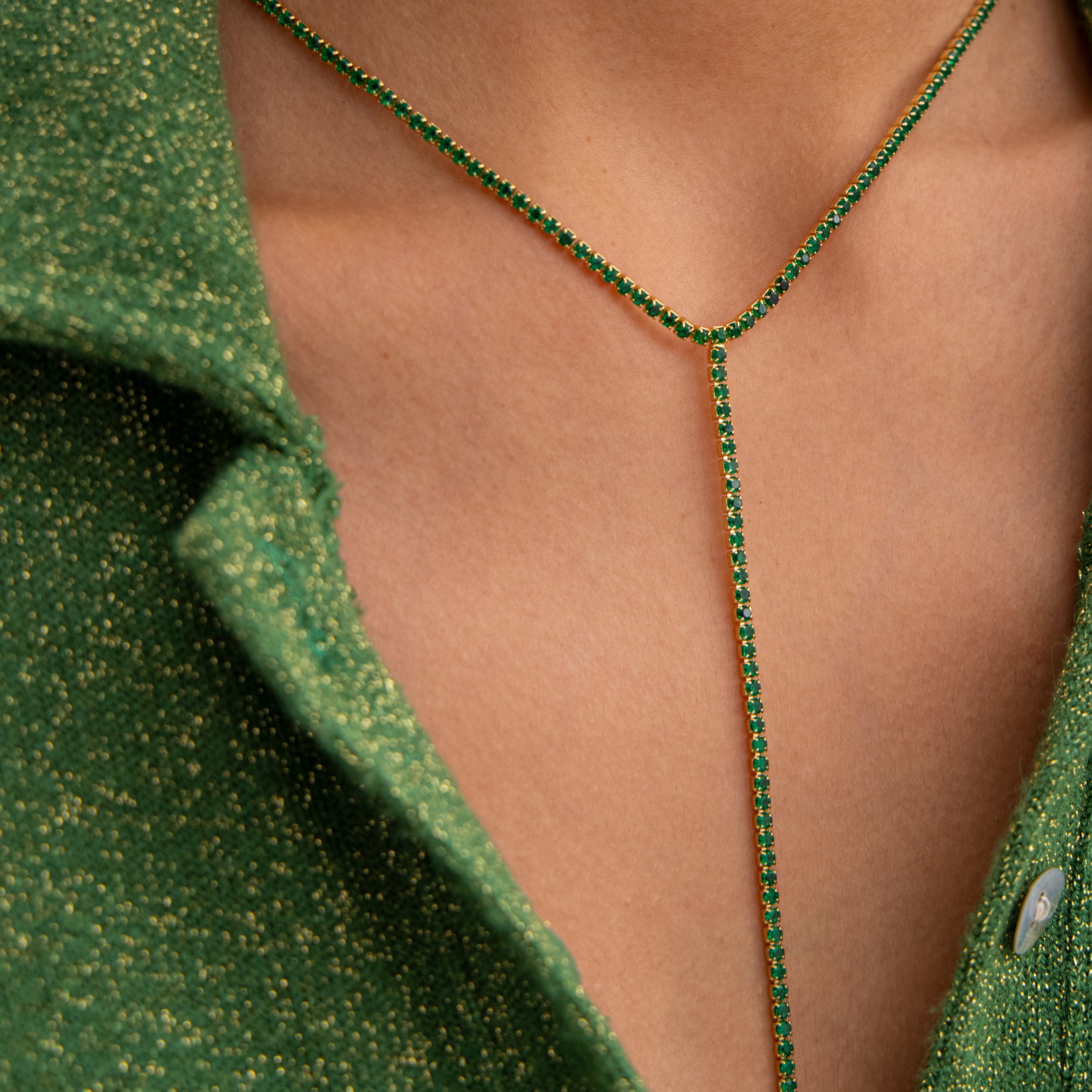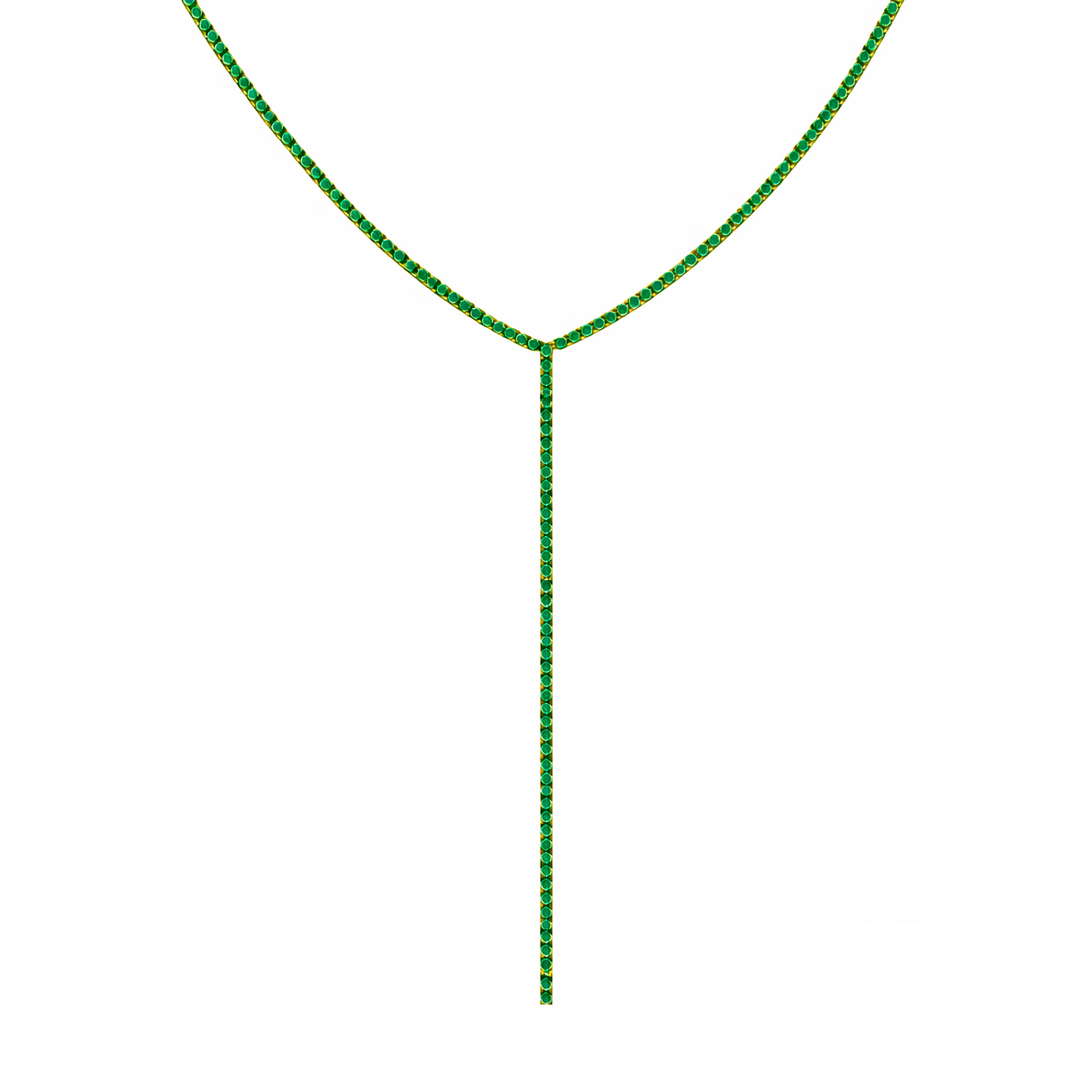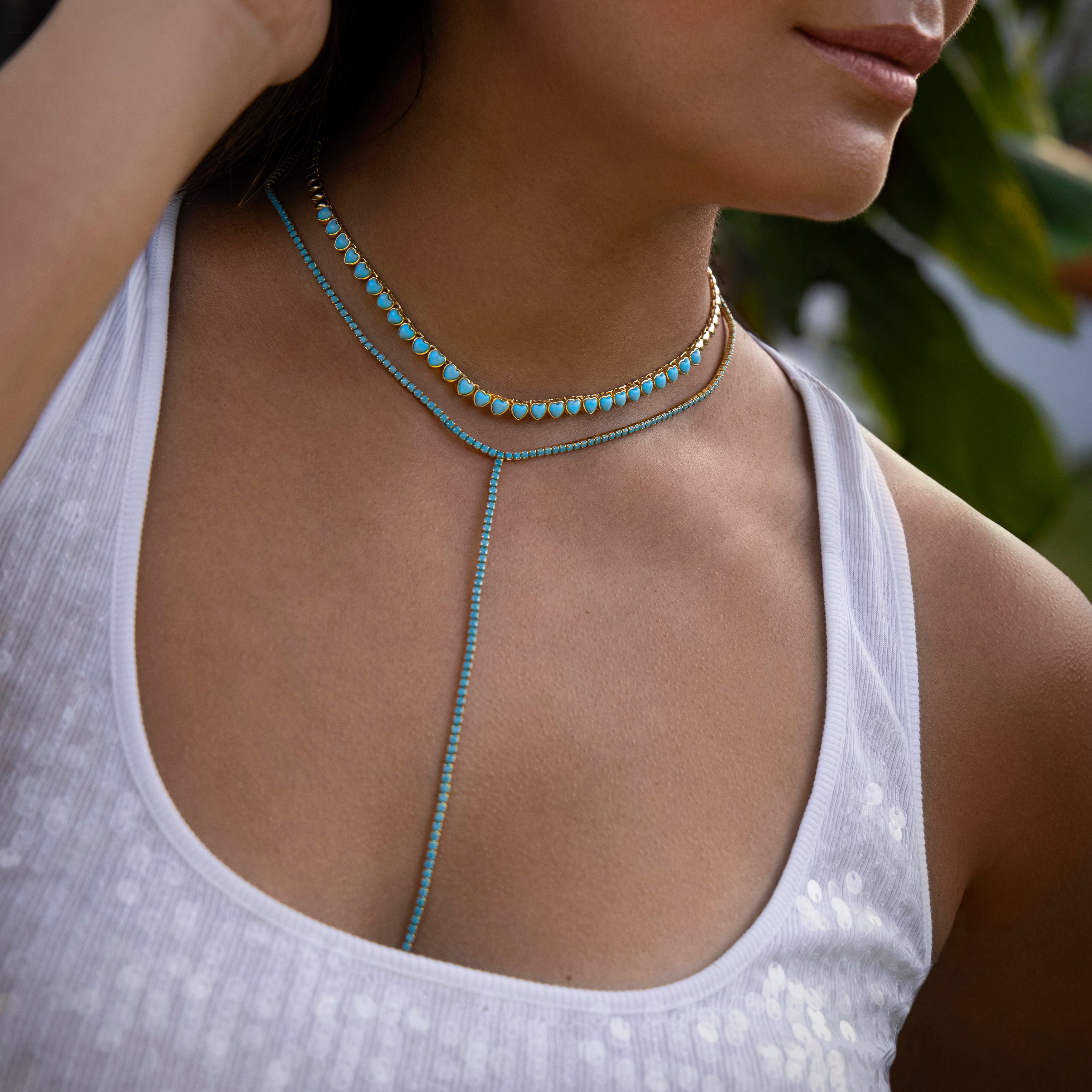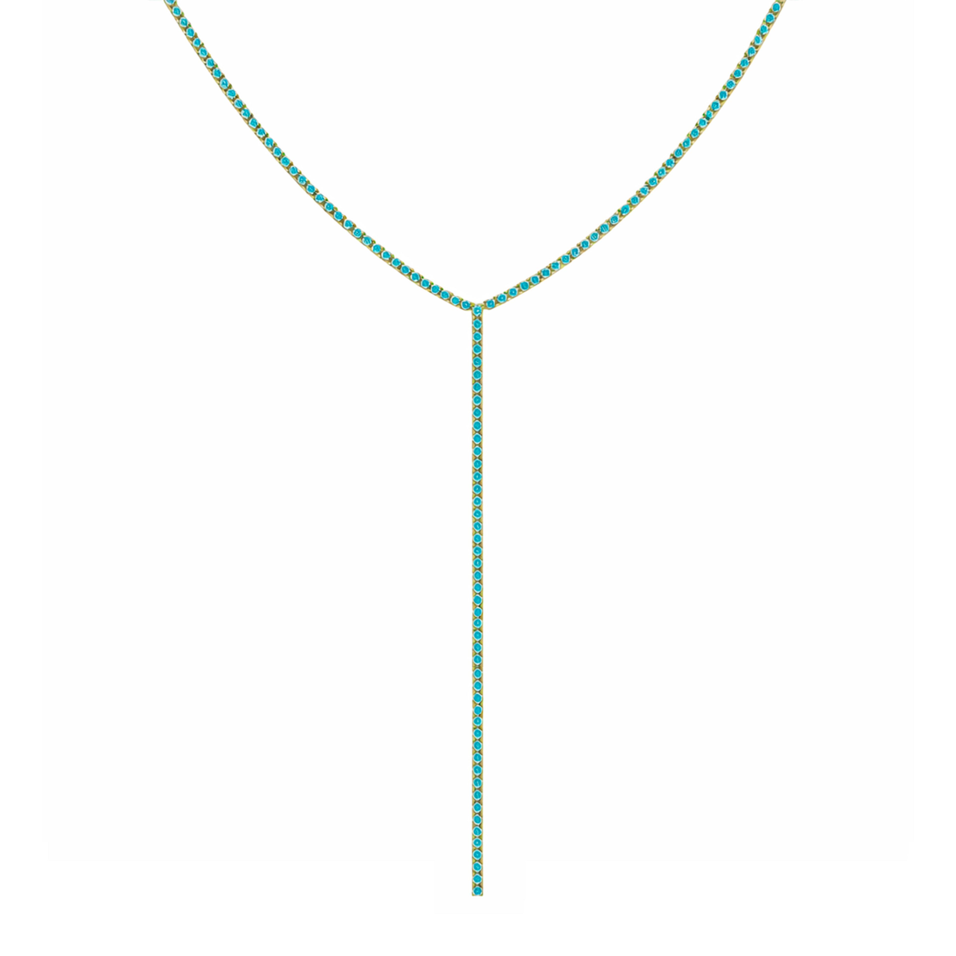 Collar lariat tipo "Y" tennis turquesa - chapa de oro 14k