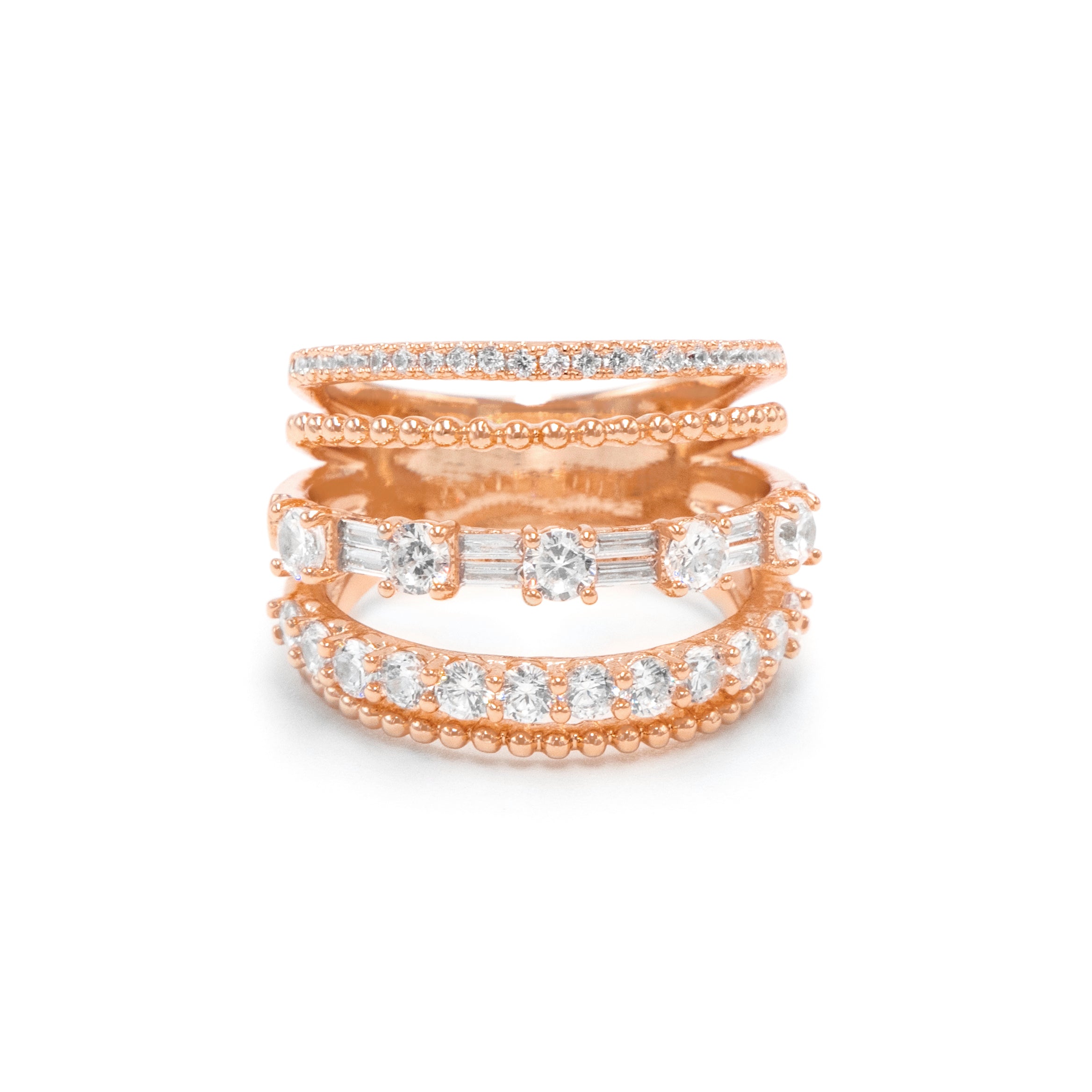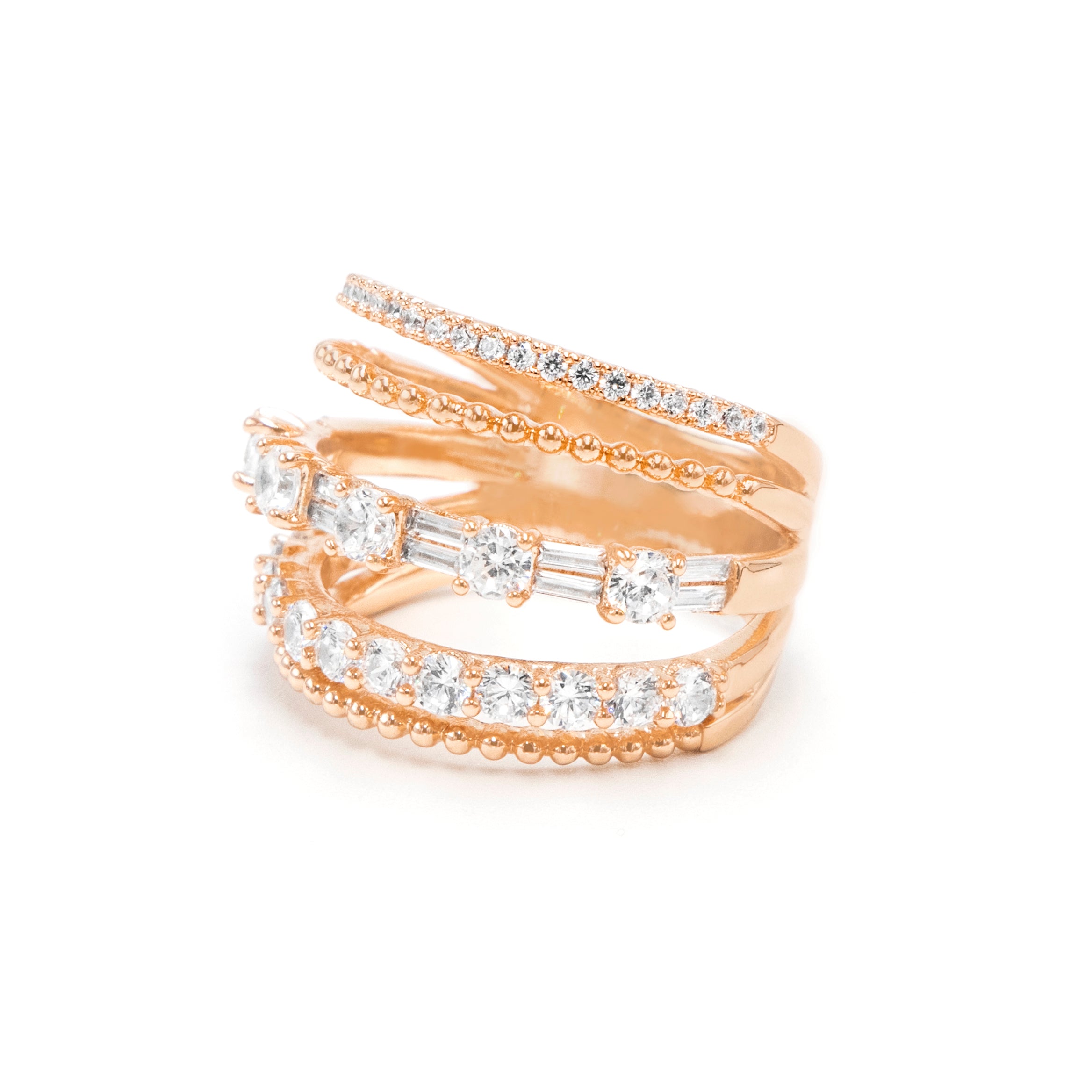 Anillo capas de zirconias oro rosa - chapa de oro 14k