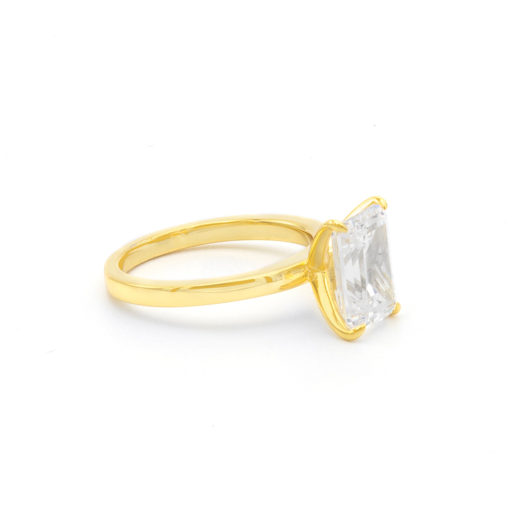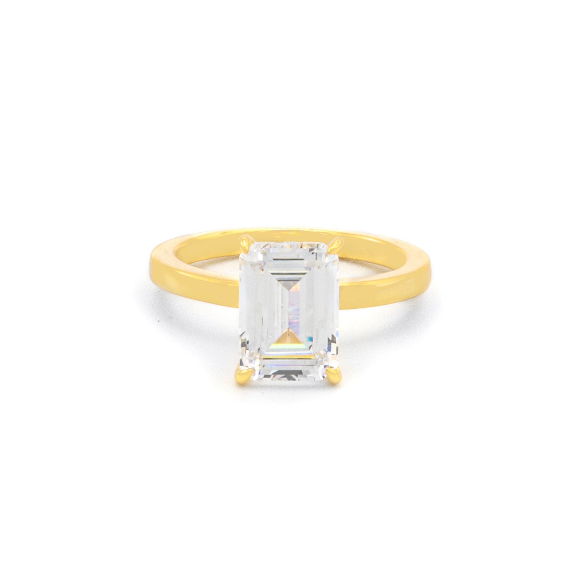 Anillo compromiso moissanita corte esmeralda dorado - oro vermeil
