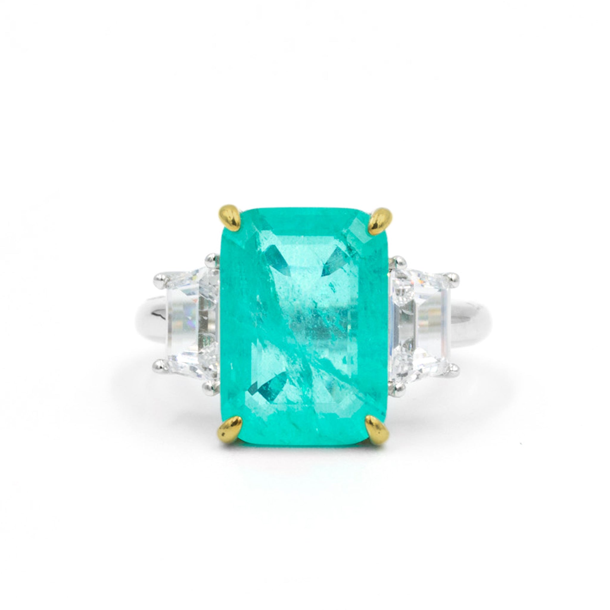 Anillo turmalina octagonal y trapecios turquesa - plata 925