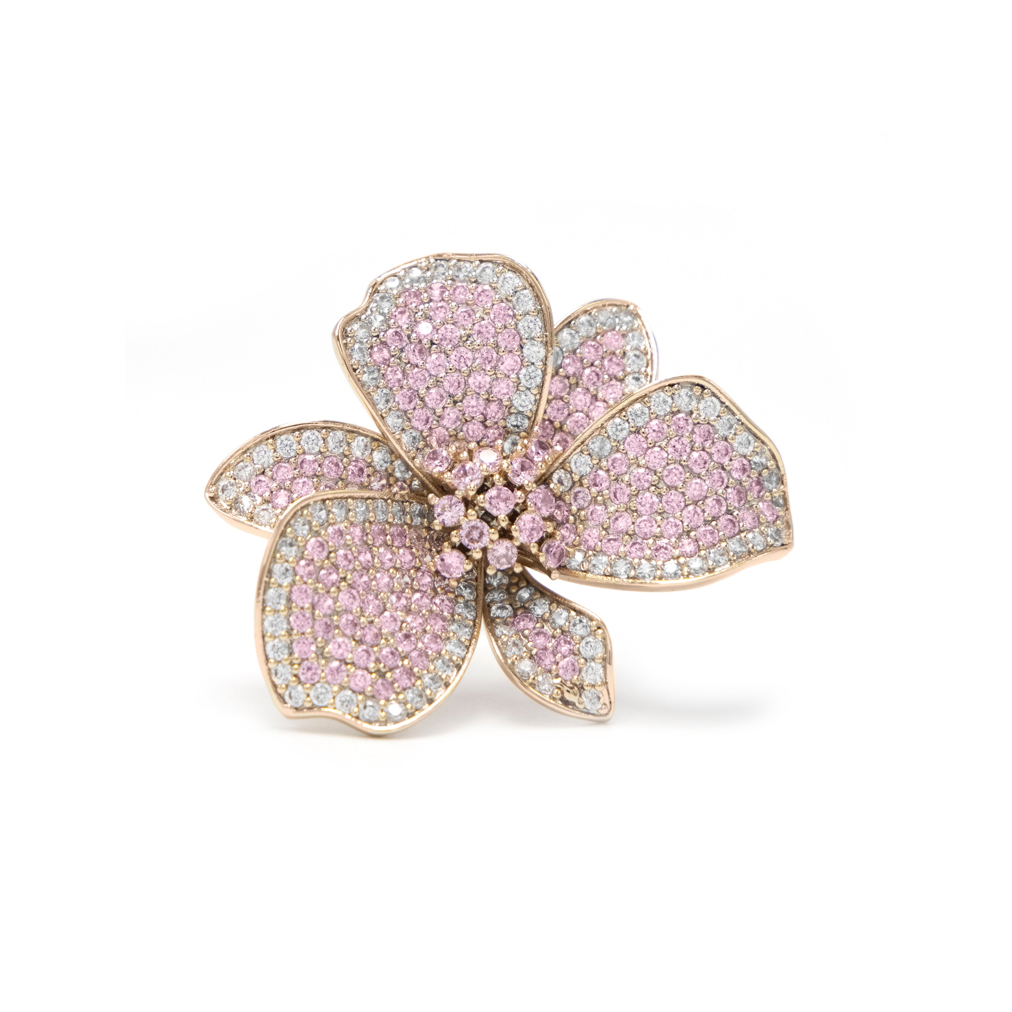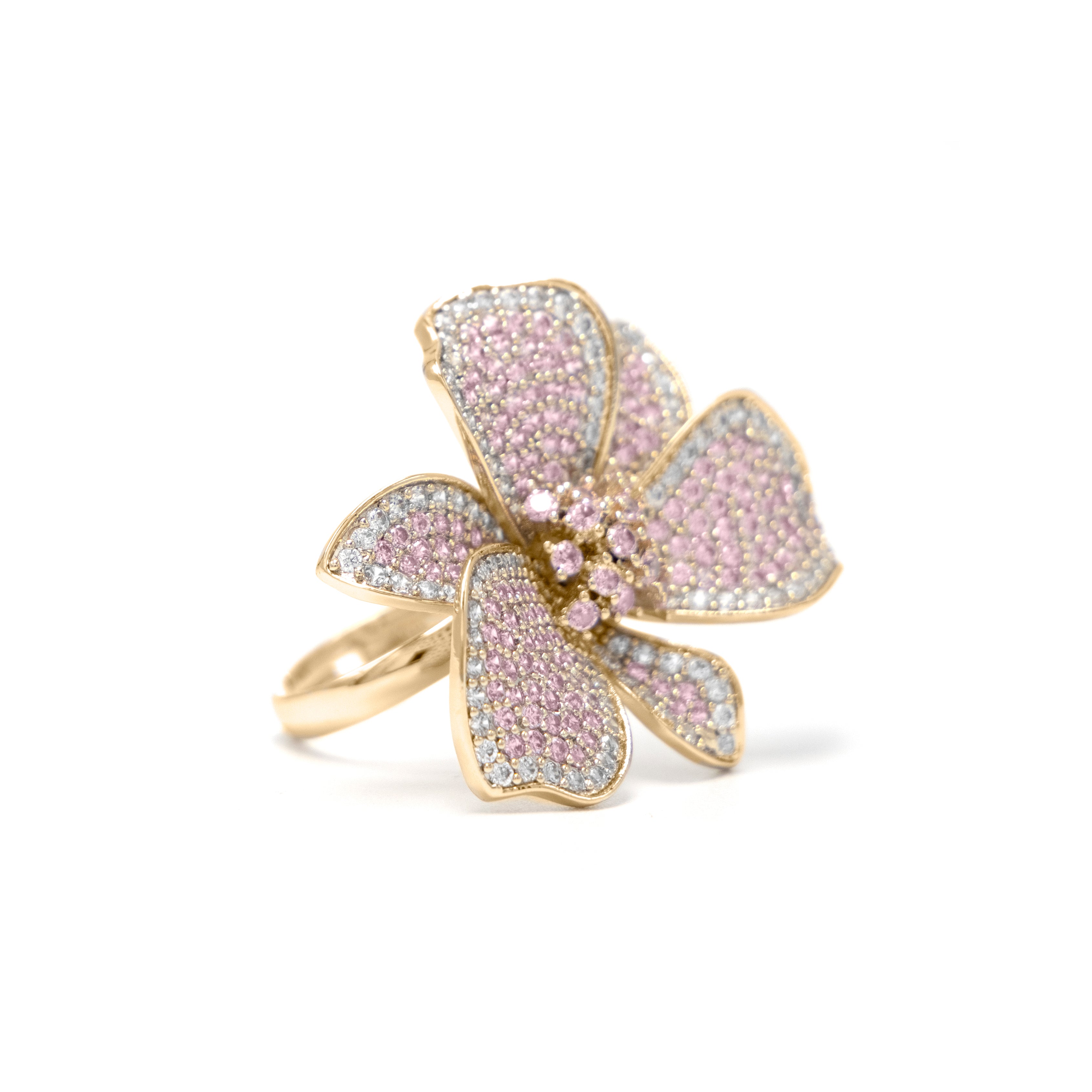 Anillo XL orquídea pavé rosa - ajustable - chapa de oro 14k