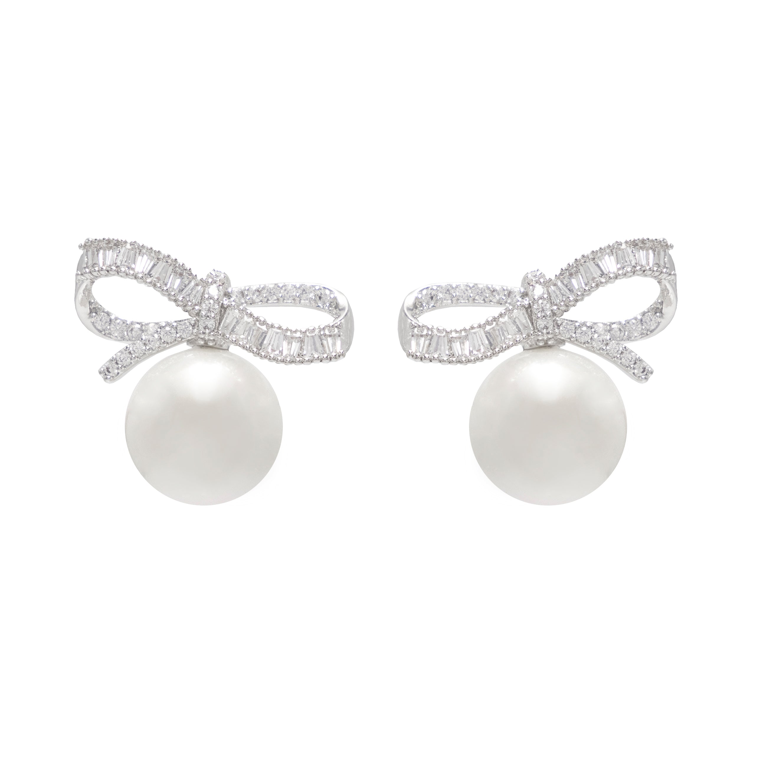 Dale un toque de elegancia y sofisticación a tu estilo con estos deslumbrantes aretes de perlas de imitación y lazos de zirconias blancas, elaborados en chapa de rodio. Con un diseño de lazo y un acabado dorado, estos aretes son el accesorio perfecto para lucir en ocasiones especiales como bodas, graduaciones o el día de San Valentín. La belleza de sus formas curvas refleja un diseño moderno y limpio que te hará sentir fabulosa en cualquier lugar que los lleves. Lavanda tiene para ti esta pieza única y atemporal que realzará tu belleza con su encanto y brillo.