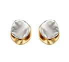 Diseño contemporáneo con un toque artístico. Estos aretes tipo front-back destacan por su forma orgánica y acabado escultórico, combinando dos tonos metálicos plateado y dorado que crean un contraste elegante y moderno.