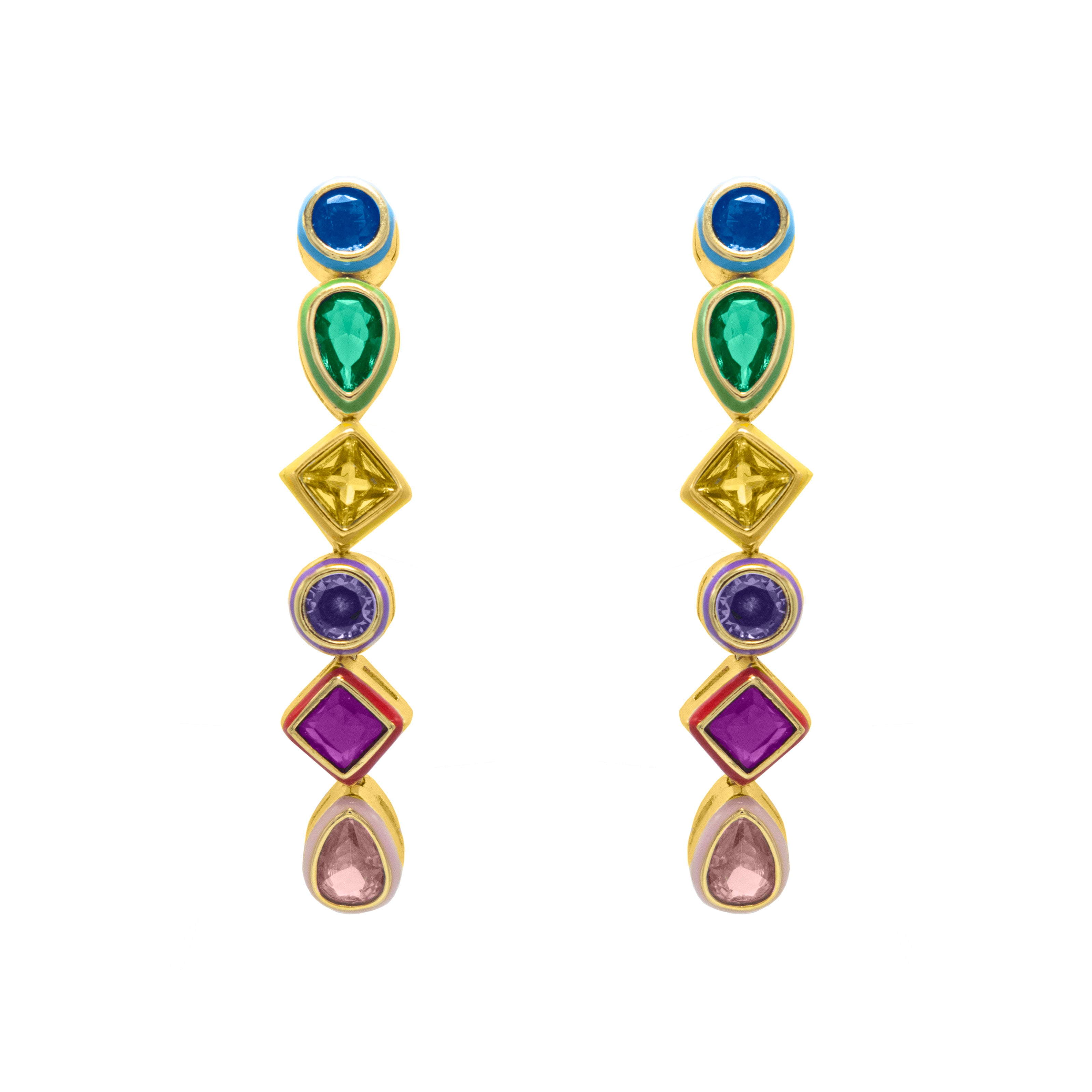 Aretes largos tennis con zirconias biseladas de colores - chapa de oro 14k