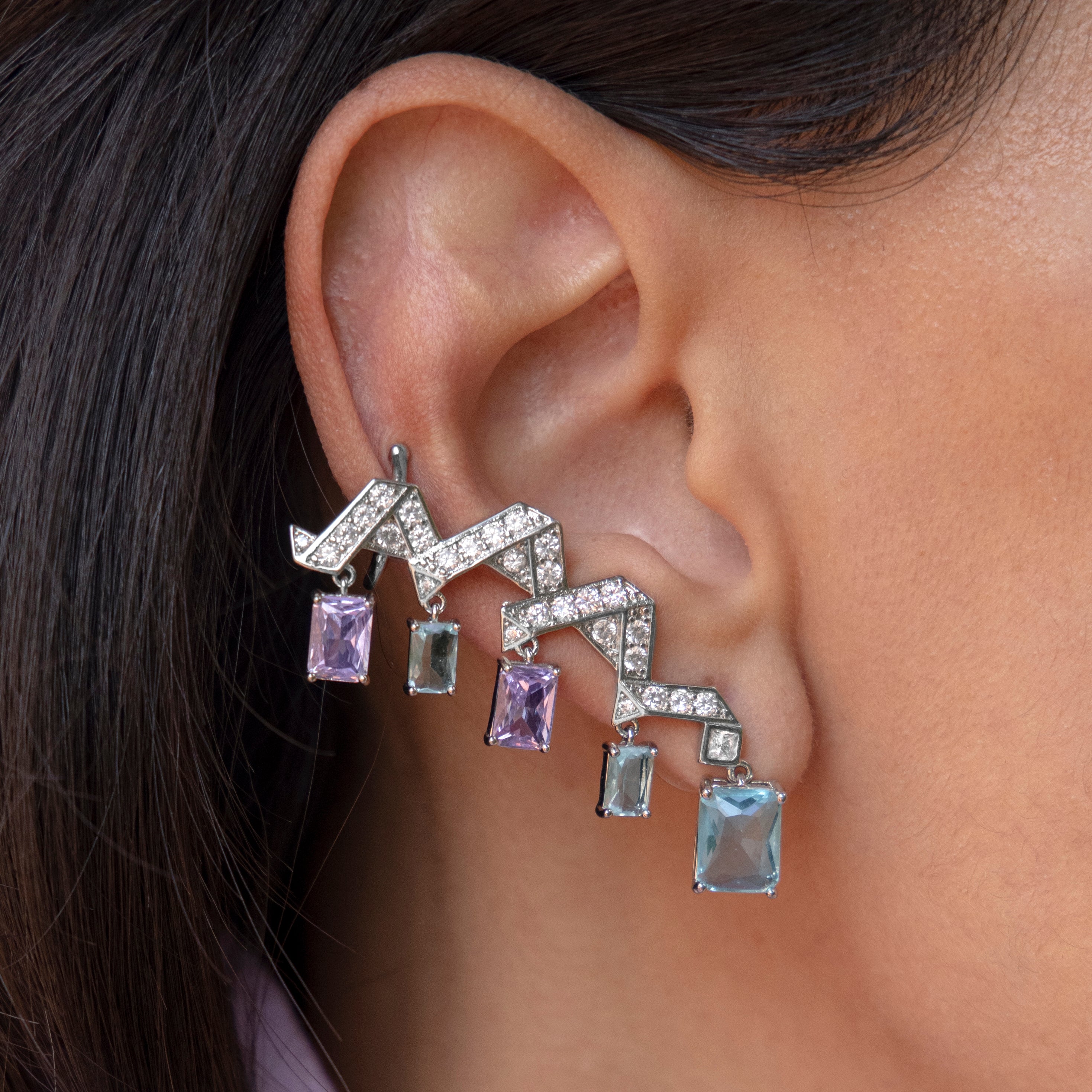 Haz una declaración de estilo con estos fascinantes aretes trepadores de piedras de colores. Cada piedra irradia un brillo único, complementado por la elegancia de la chapa de rodio. Perfectos para añadir un toque de color y sofisticación a cualquier conjunto, estos aretes son la elección ideal para destacar en cualquier ocasión. Eleva tu estilo con estos exclusivos aretes de Lavanda.