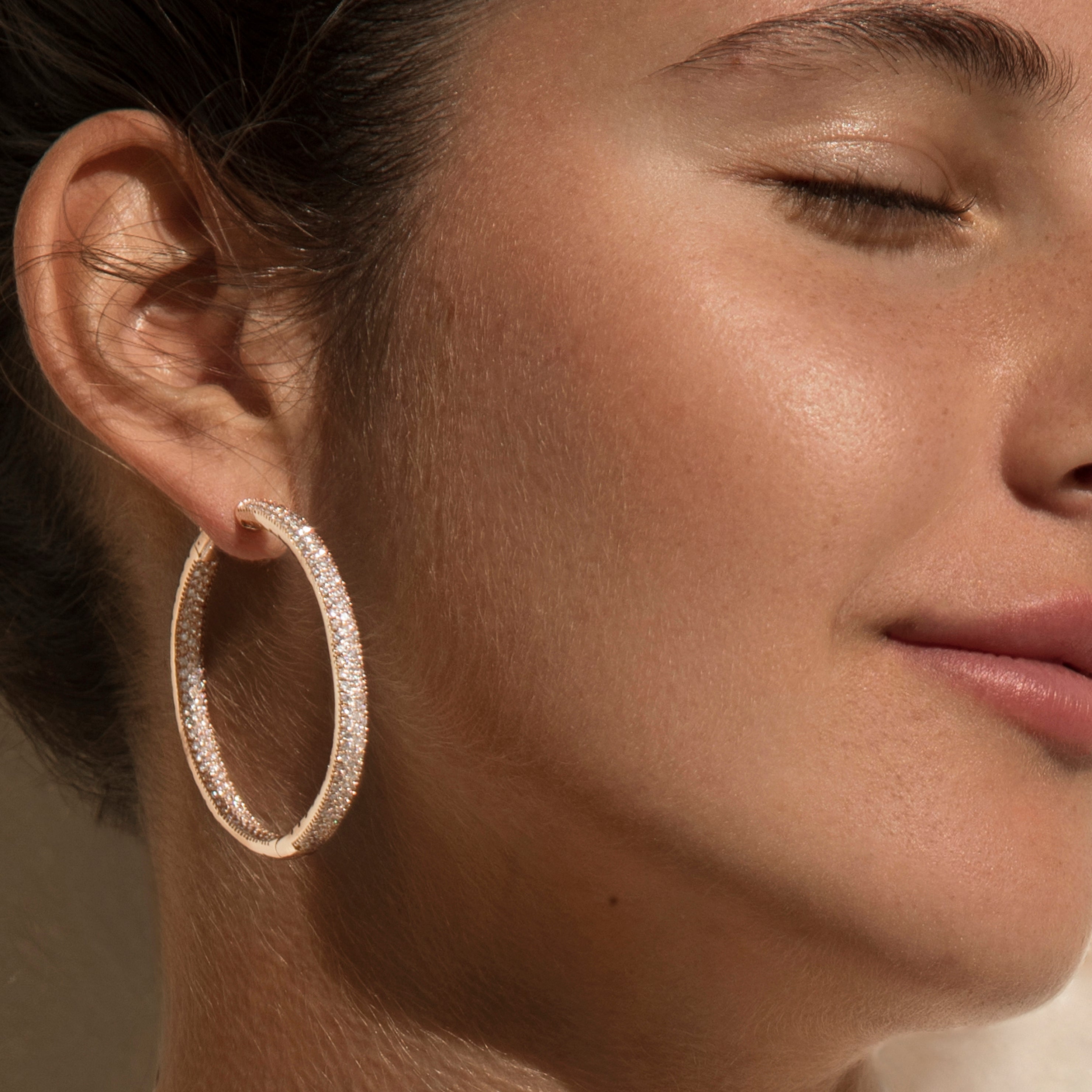 Arracadas clásicas grandes pavé plata - chapa de rodio