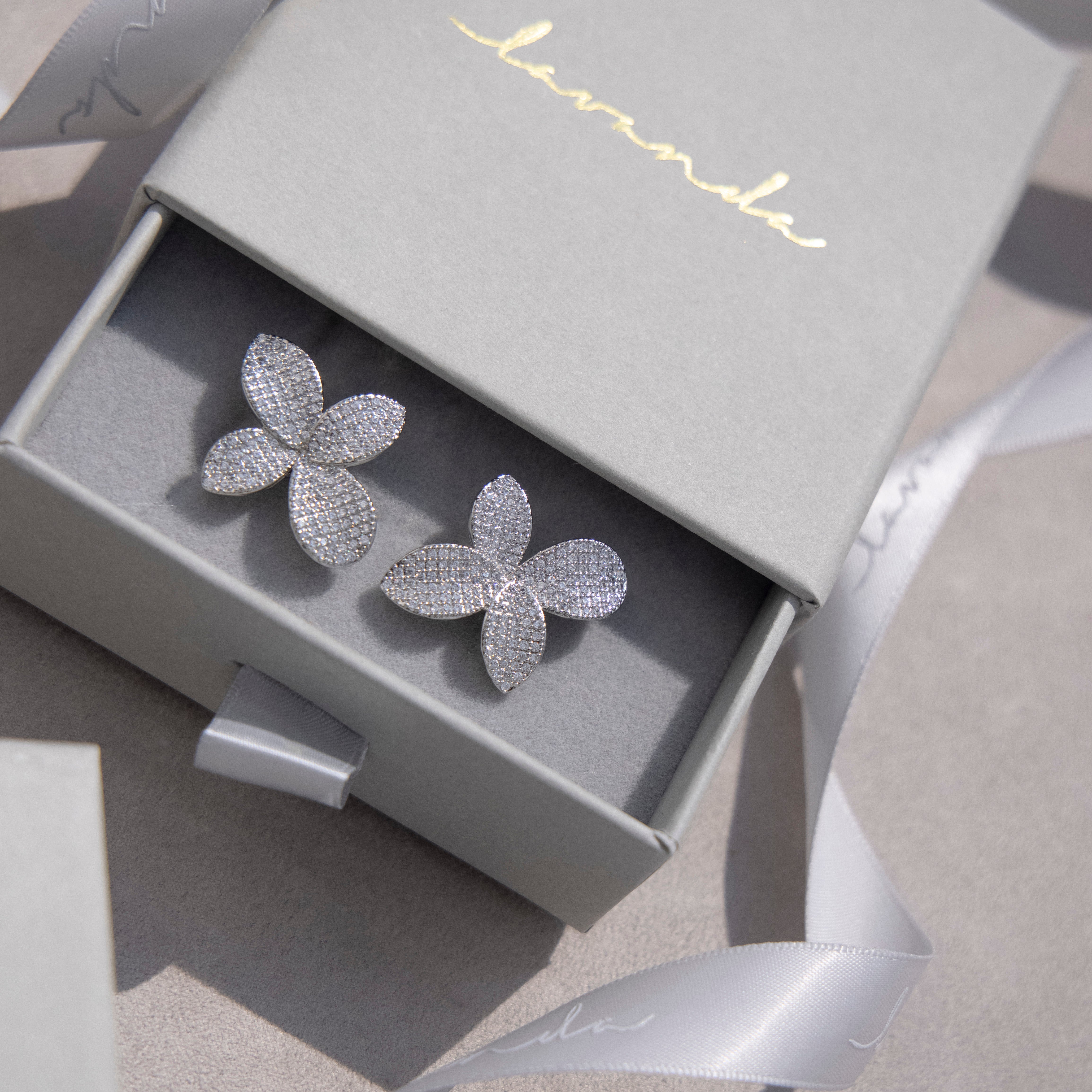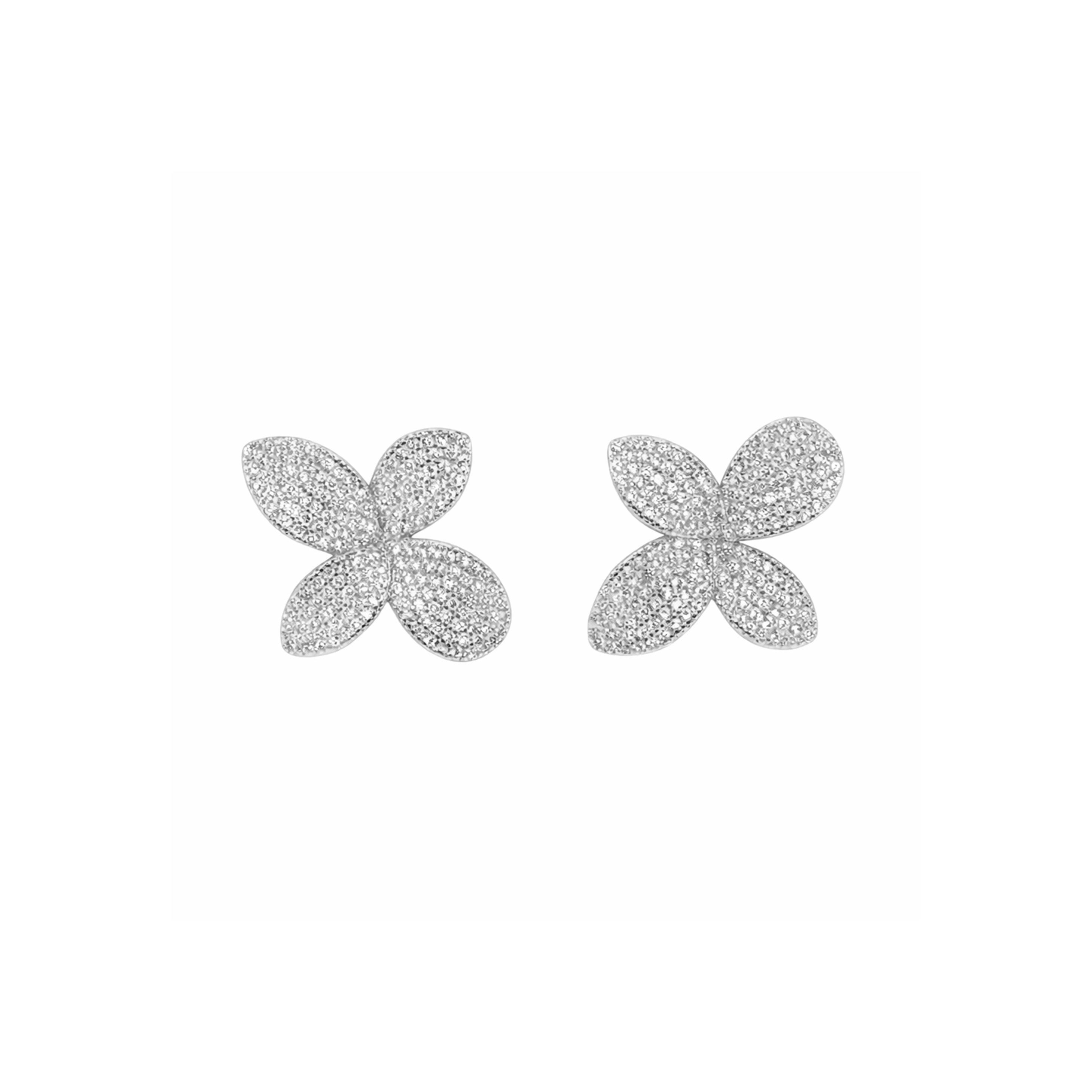 Déjate cautivar por estos broqueles de cuatro pétalos que brillan como flores de diamante. Cada pétalo está cubierto de zirconia pavé, creando un efecto deslumbrante que atrapa la luz en cada movimiento. Con su acabado en rodio, lucen sofisticados y versátiles, perfectos para complementar tu estilo sin esfuerzo. Pequeños pero poderosos, son esos accesorios que hacen toda la diferencia. ✨