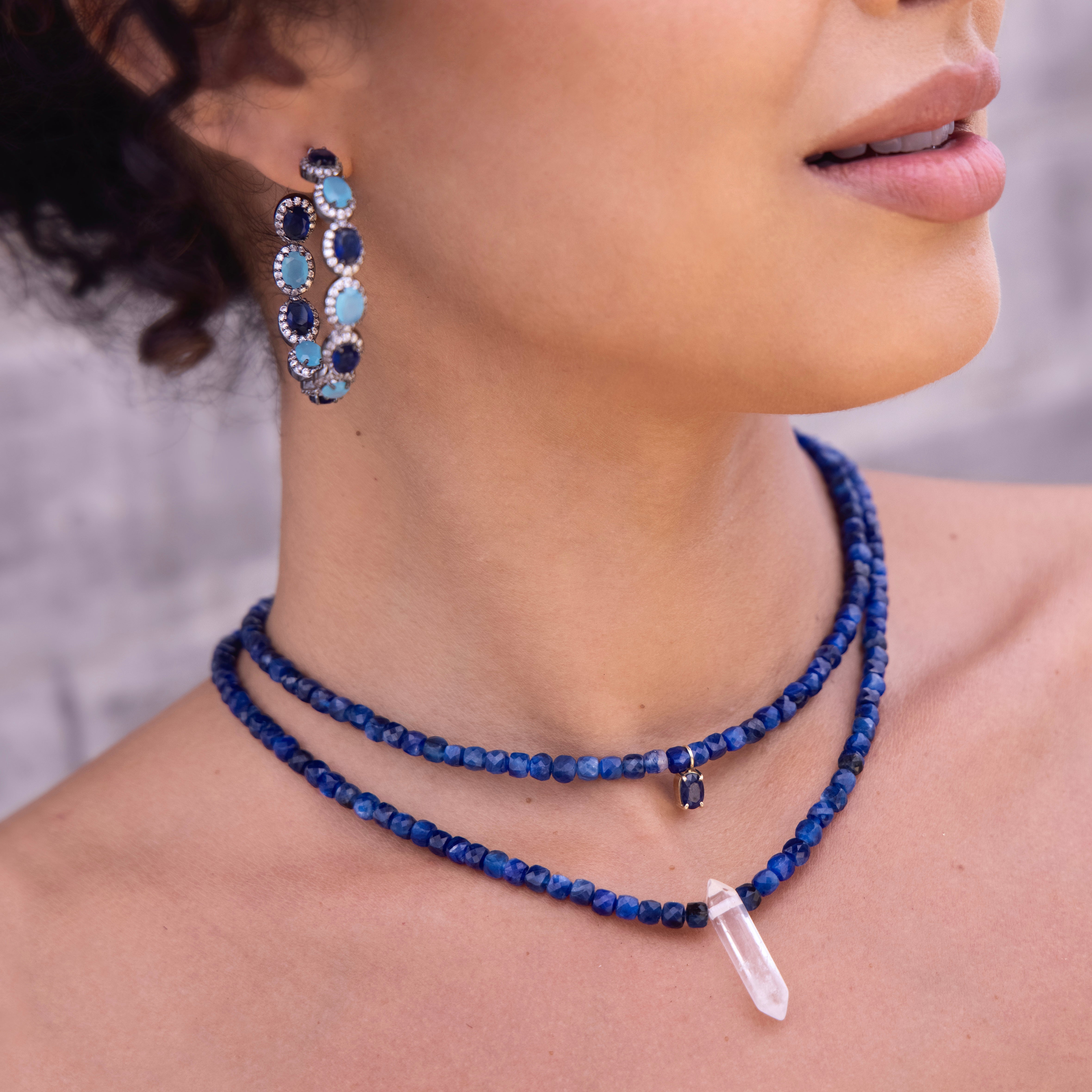 Sumérgete en la sofisticación con nuestro collar corto de Lavanda, presentando zafiros naturales en forma de cubo en tono azul, y un cierre de oro de 14 quilates. Los zafiros, con su intenso color y brillo cautivador, añaden elegancia y distinción a esta joya única. Una expresión de estilo sofisticado que resalta tu belleza con un aura de lujo y encanto. Esta pieza excepcional te envuelve en un brillo deslumbrante, transportándote a un mundo de elegancia atemporal.