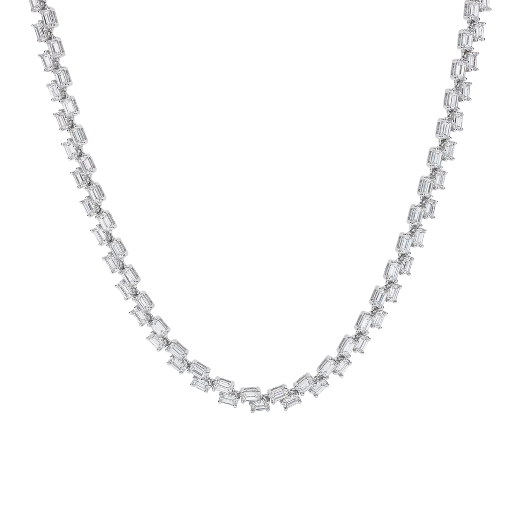 El clásico collar tipo tennis, pero con un toque más moderno ✨ Sus piedras en forma ovalada crean un brillo súper elegante y diferente, perfecto para destacar sin esfuerzo.