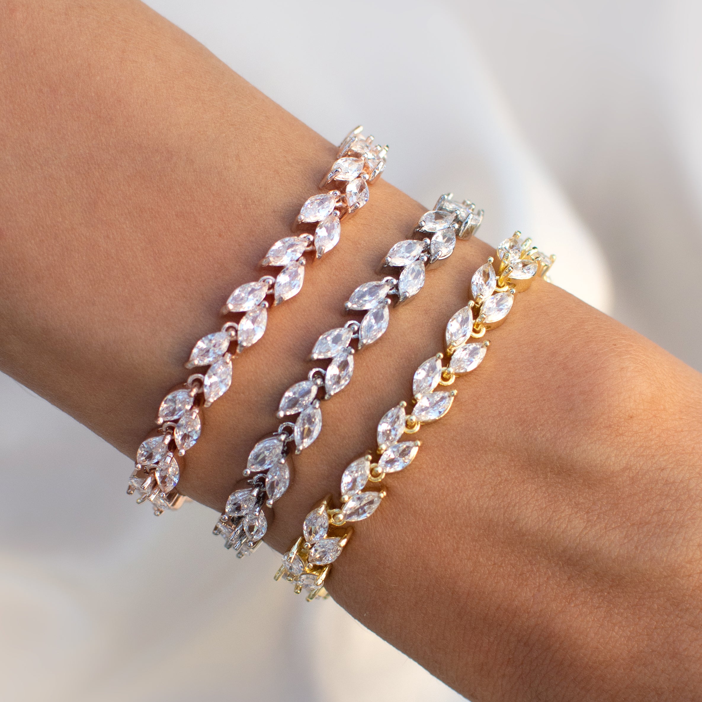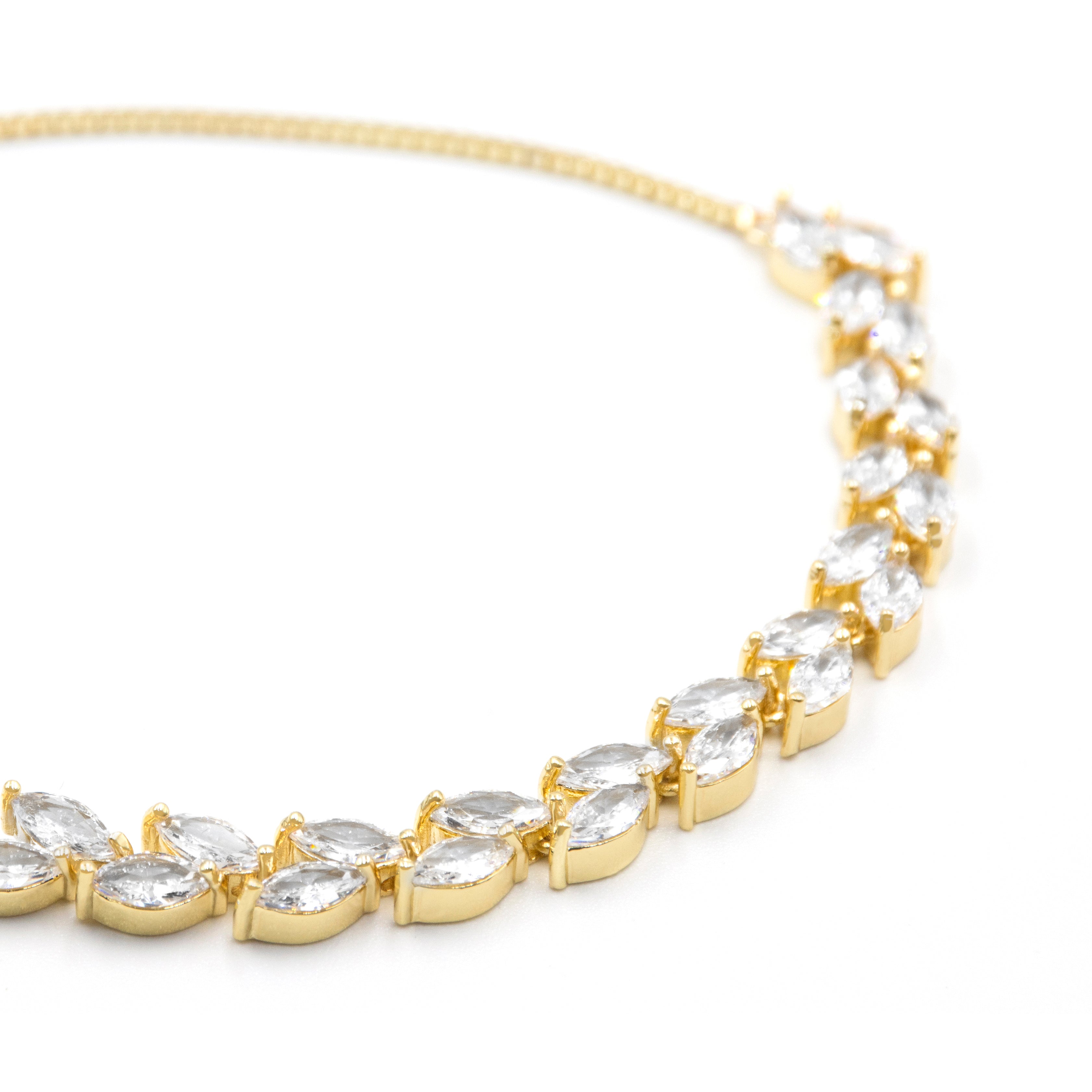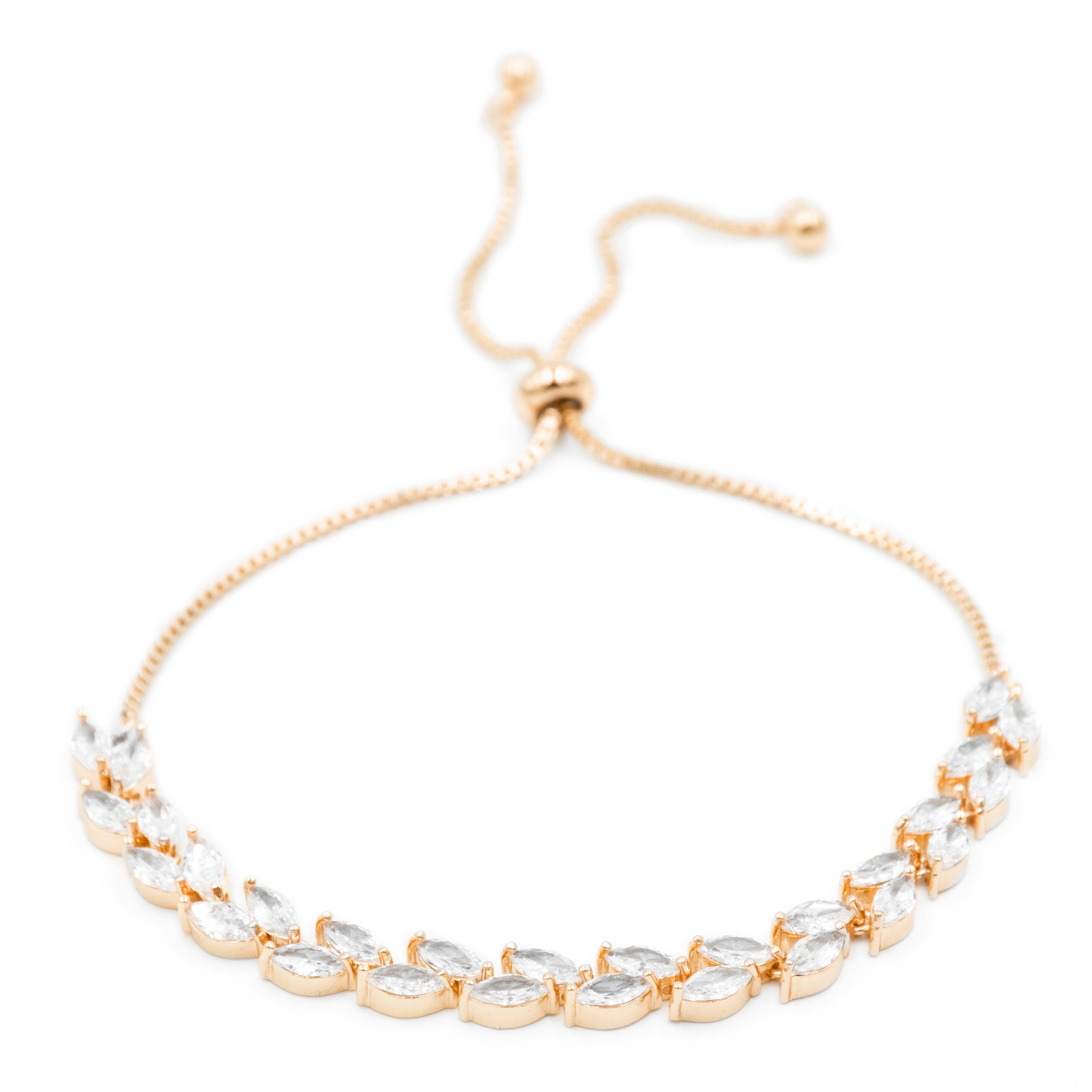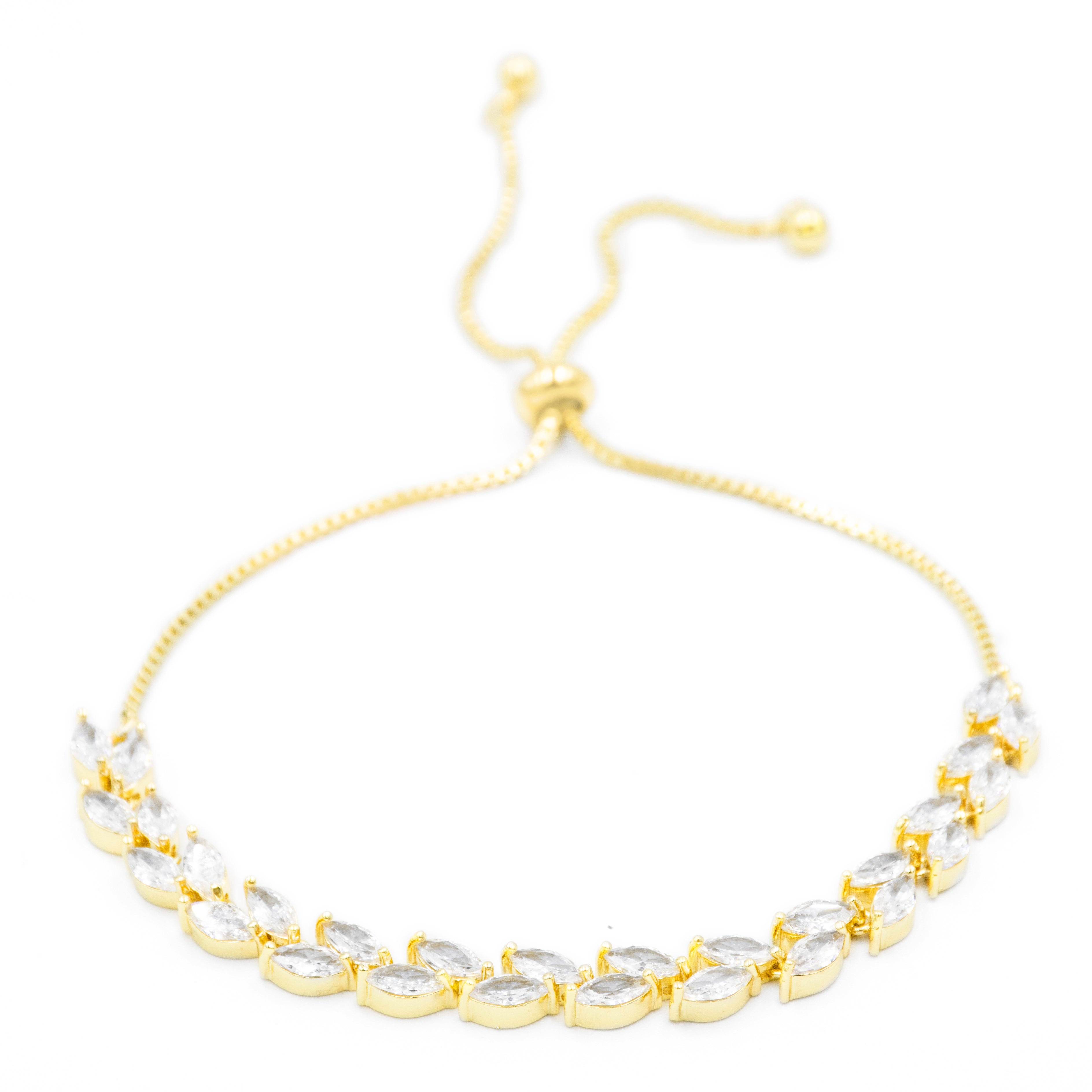 Pulsera con doble fila de zirconias corte marquise dorado - ajustable - chapa de oro 18k
