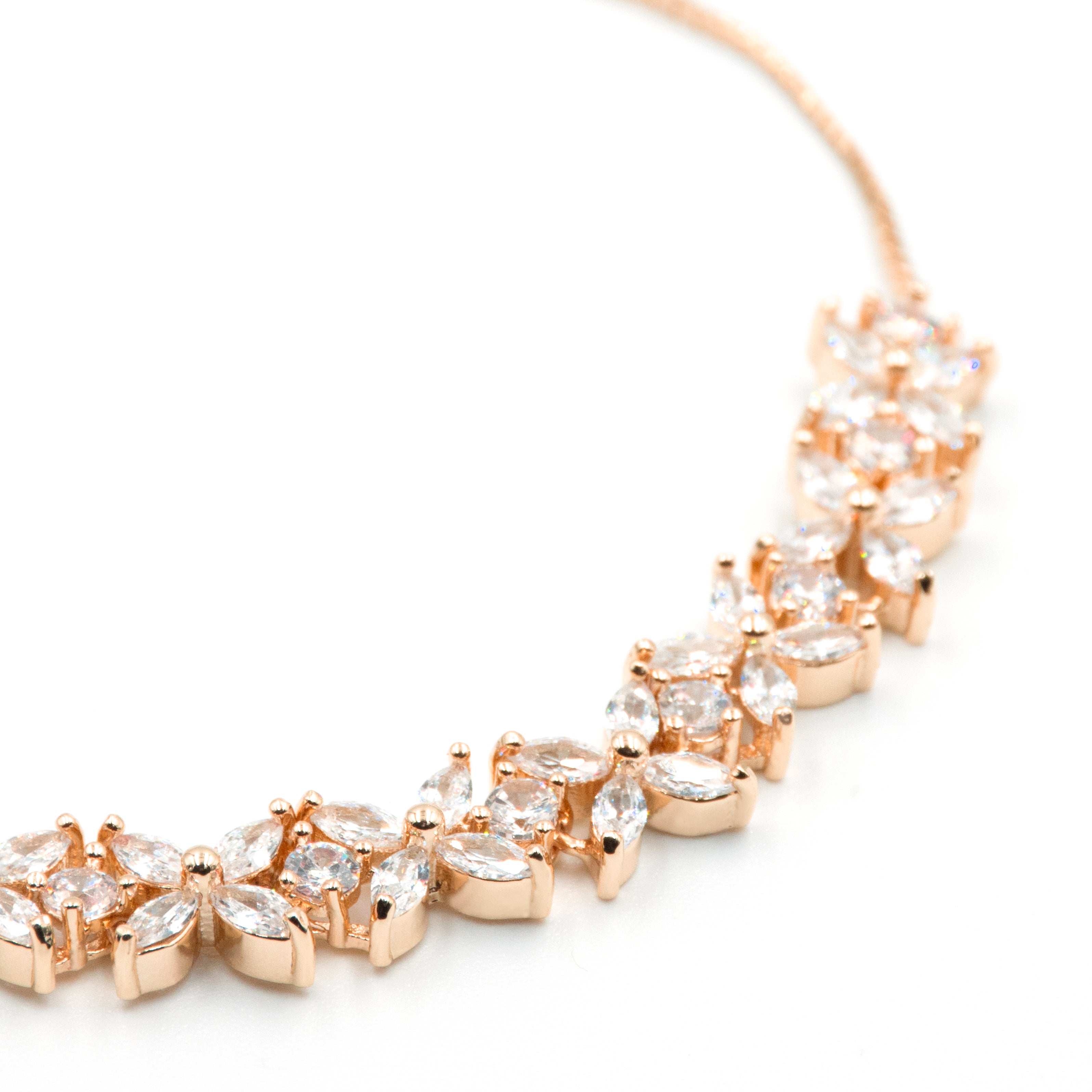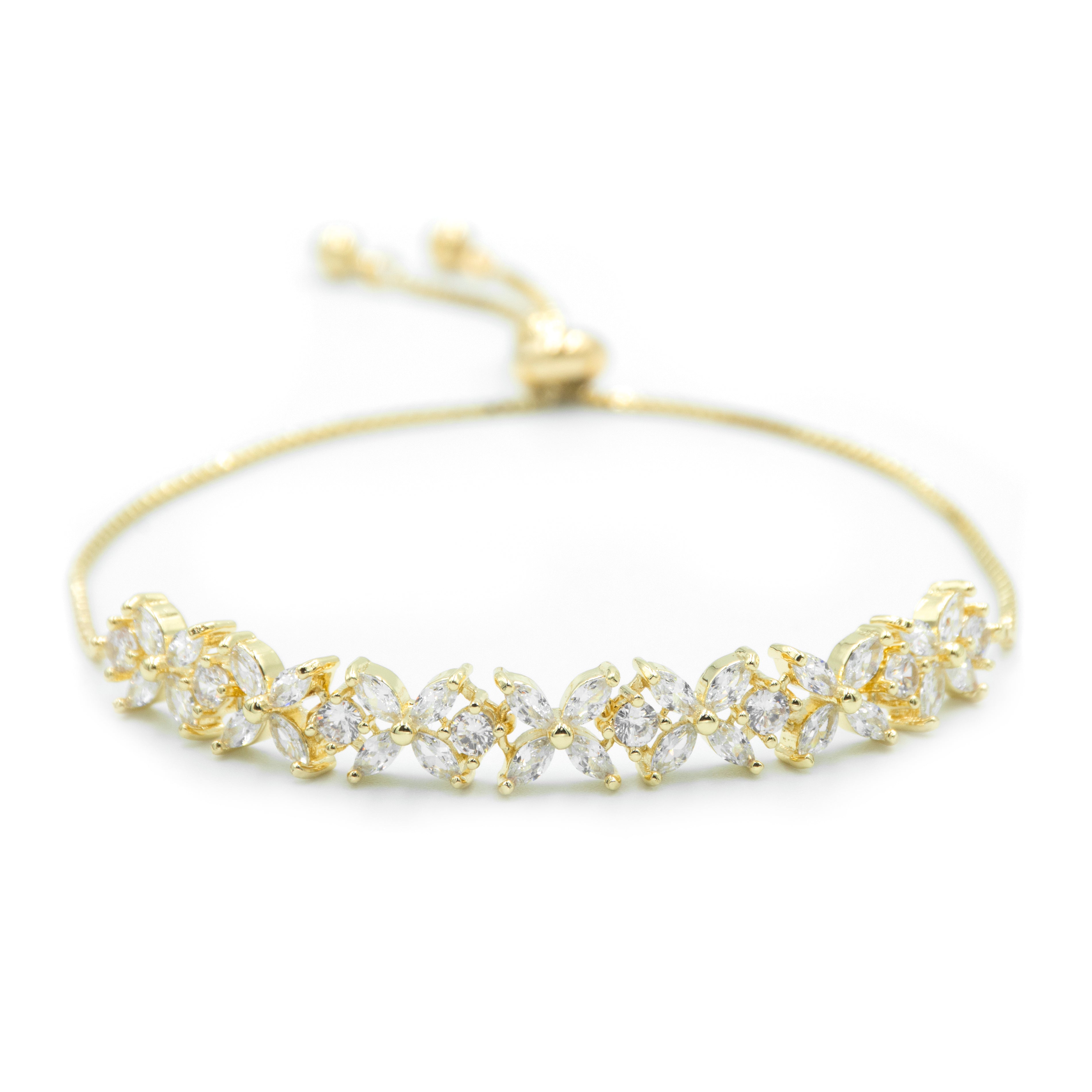 ¡Un toque de sofisticación y delicadeza! Esta pulsera cuenta con hermosas flores de zirconias en un encantador tono oro rosa. Su diseño ajustable te brinda comodidad y versatilidad, mientras que la chapa de oro de 18k añade un brillo lujoso. Completa tu estilo con esta deslumbrante pulsera de Lavanda y déjate cautivar por su belleza.