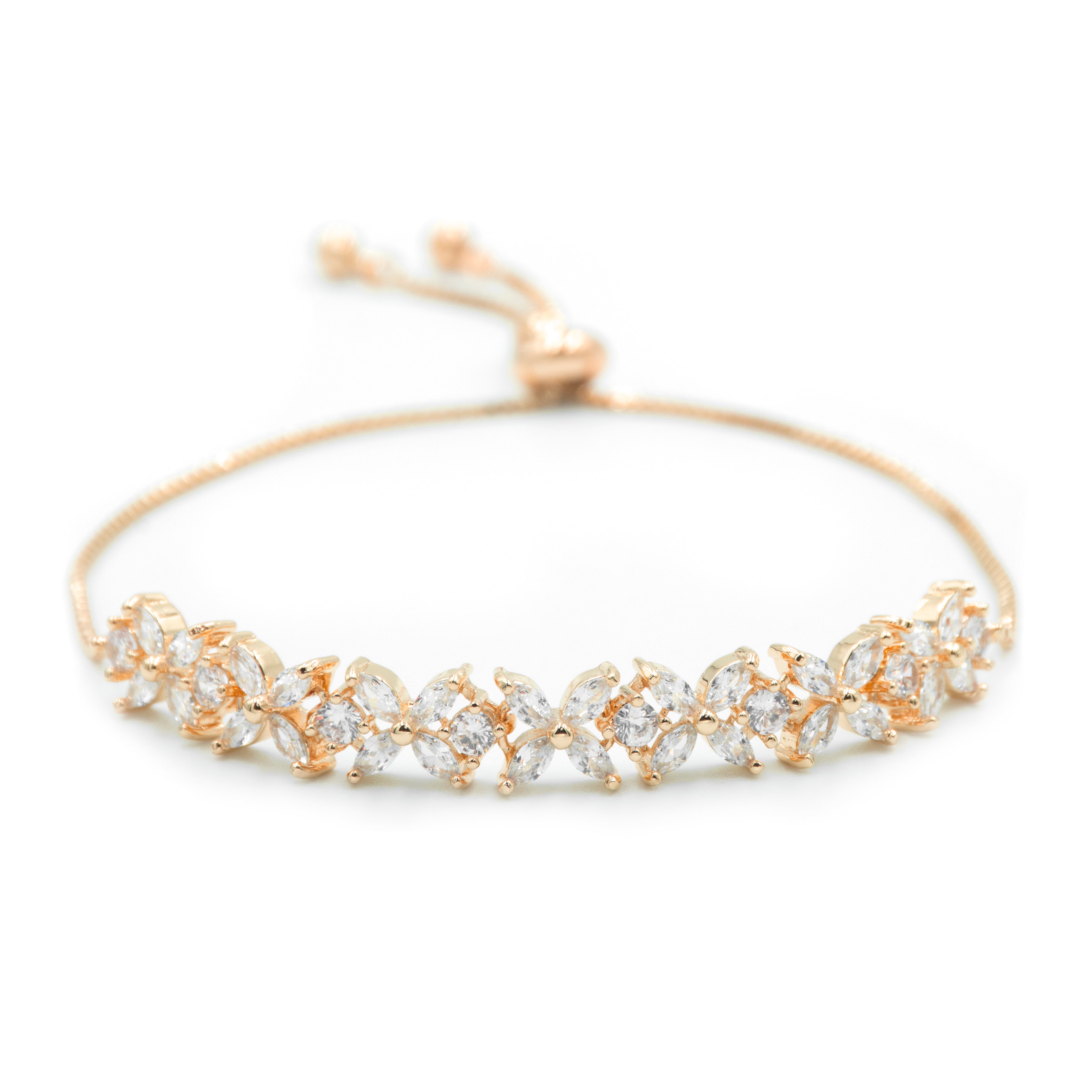 Pulsera con flores de zirconias oro rosa - ajustable - chapa de oro 18k